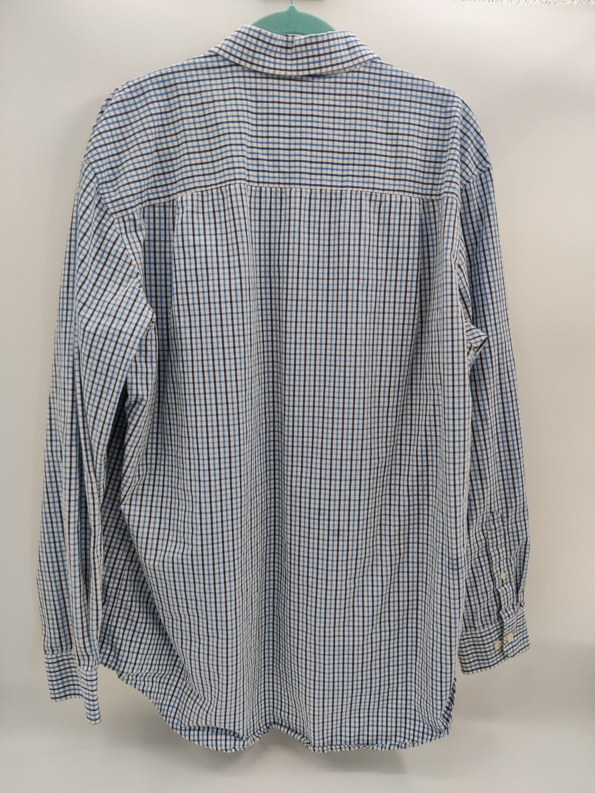 IZOD Men s Blue Plaid Long Sleeve Button Down Shirt 100 Cotton Size Large
