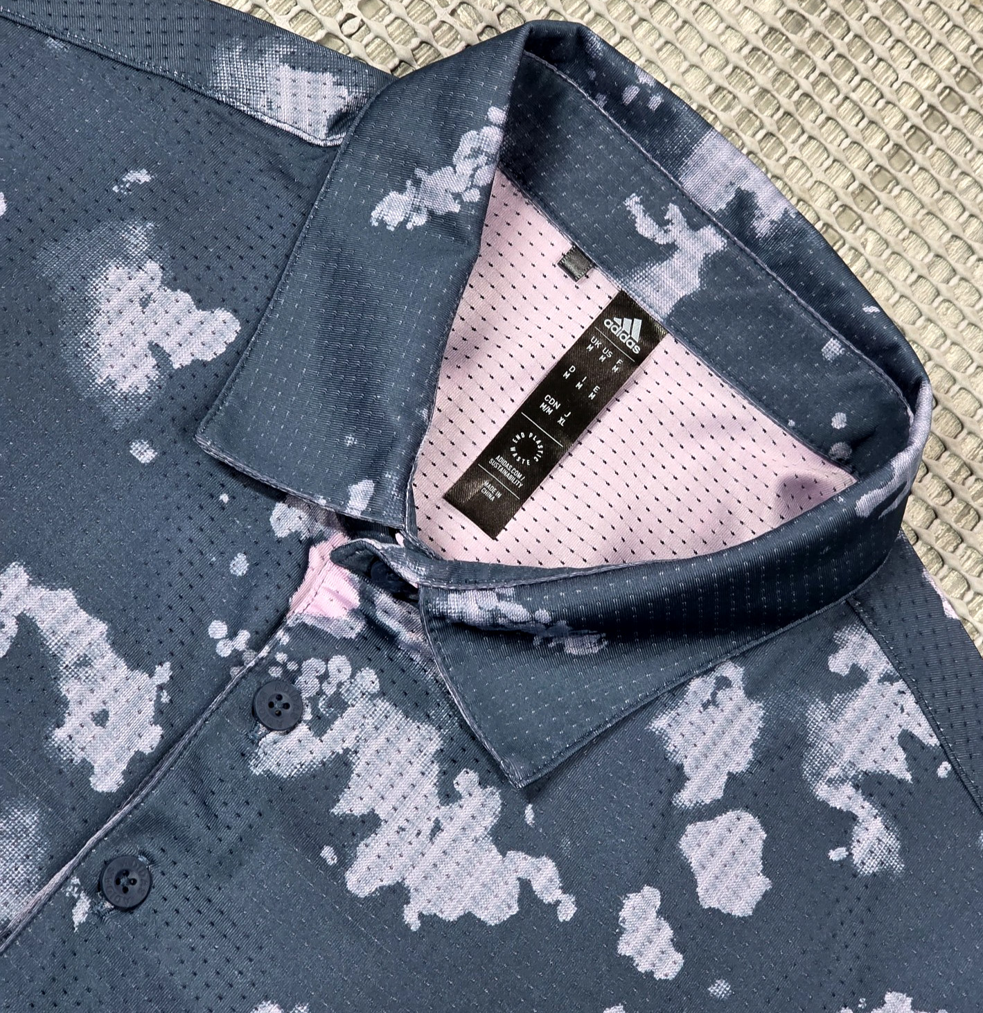 Adidas Mens Golf Performance Polo M Blue Camo Multicolor Mesh Short SLeeve Shirt