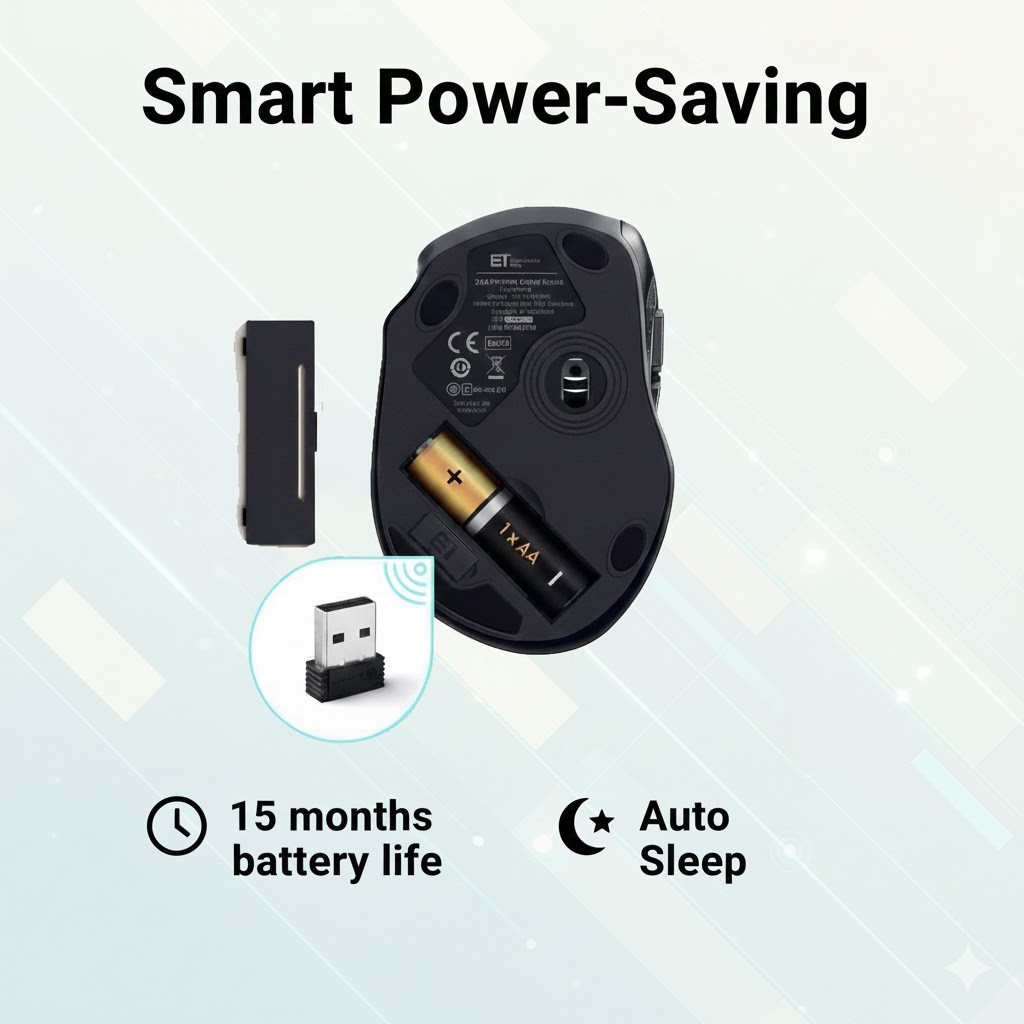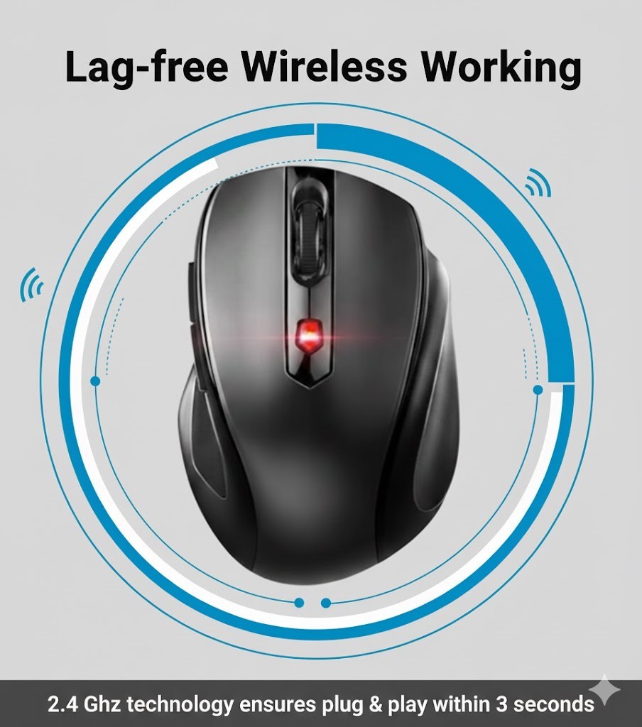 Wireless 6 Button Ergonomic Mouse with 5 Adjustable DPI Levels - Black