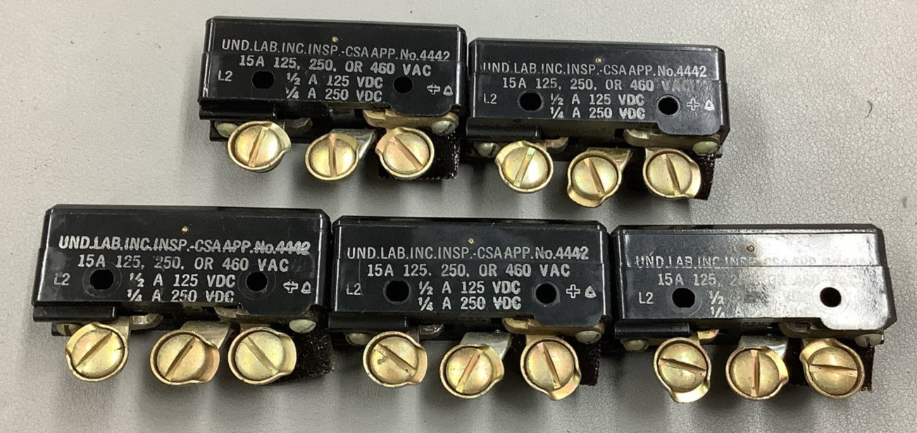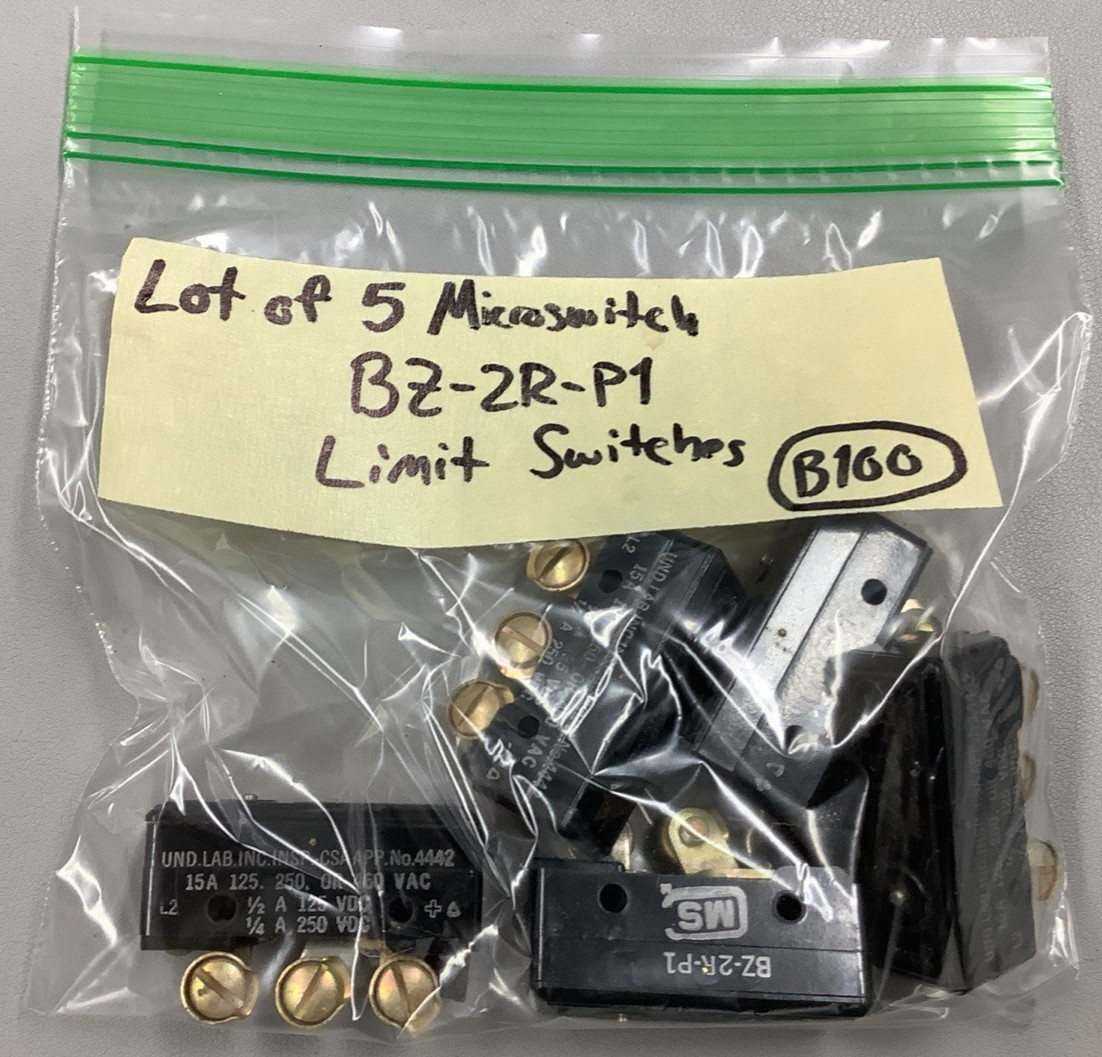 Lot of 5 Microswitch BZ-2R-P1 Limit Switches SPDT, 15A 600V B100