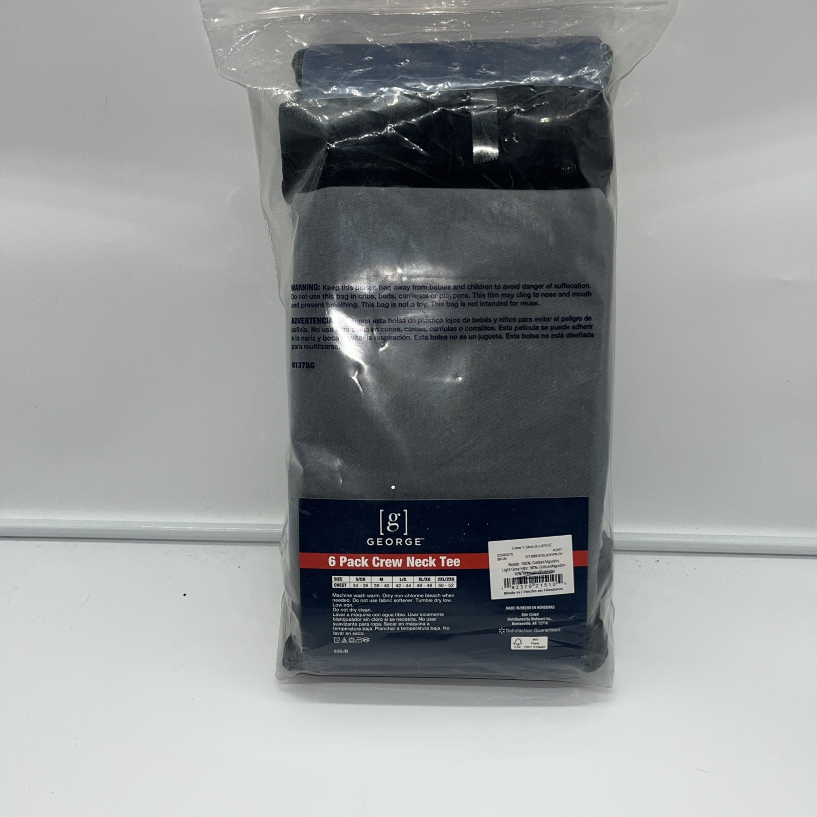 George Men s Crew T-Shirts 6-Pack Tag Free Black Gray Size X Large 46-48 New