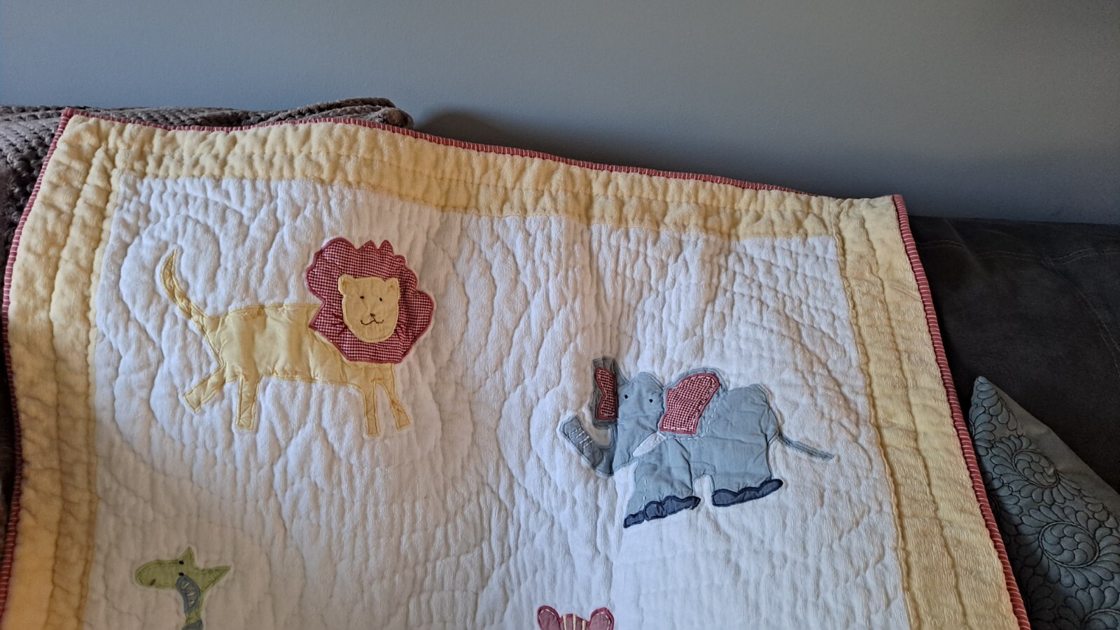 как выглядит Pottery Barn Nursery Bedding Quilt Unisex Safari Animals фото
