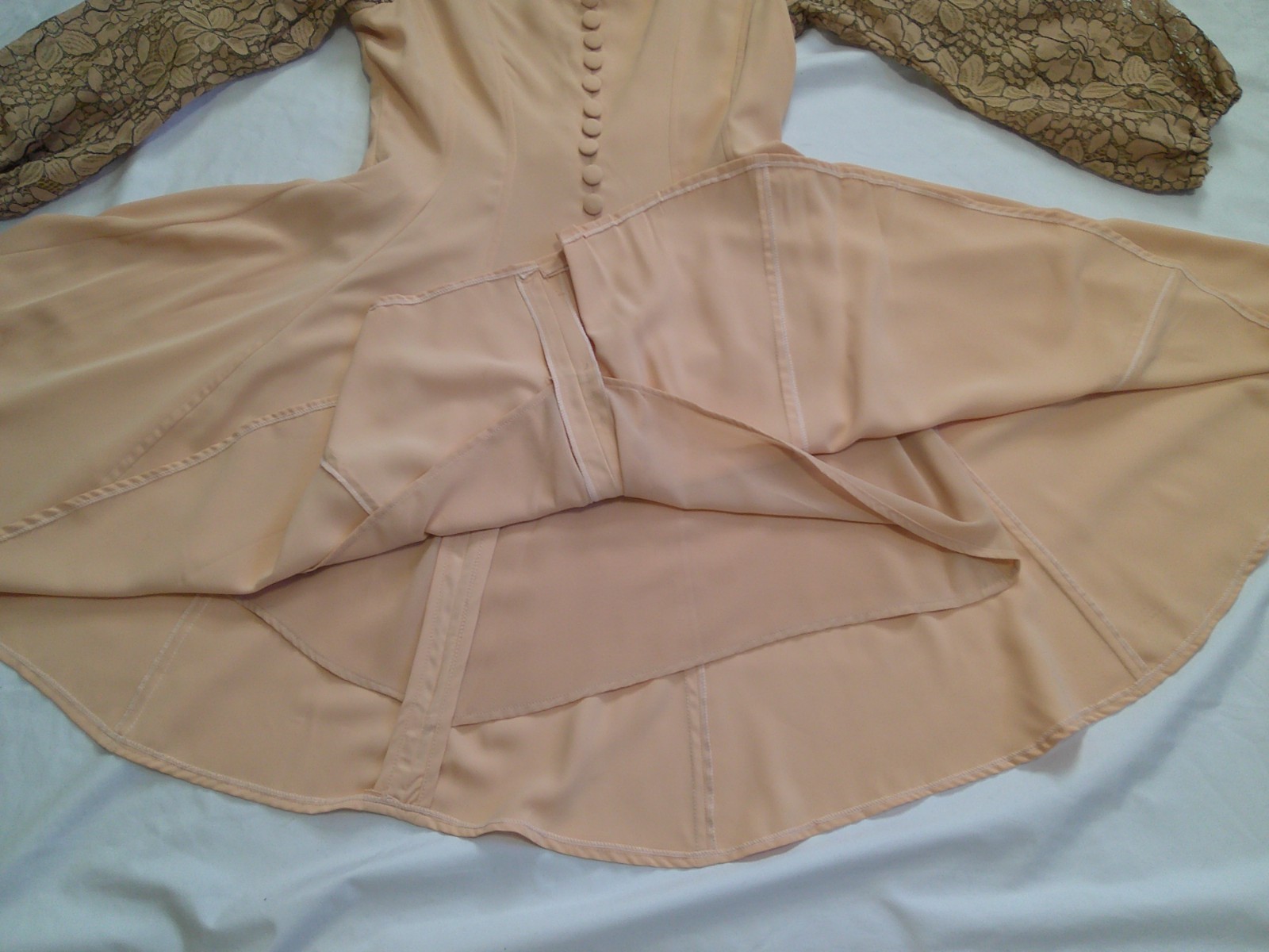 как выглядит Vtg Mod 60s/70s Unique Peach Rayon Lace Sleeve 100" FULL SWEEP Mini Dress M фото