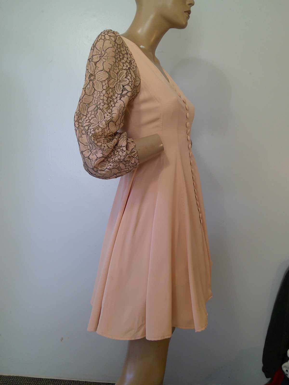 Vtg Mod 60s/70's Unique Peach Rayon Lace Sleeve 100 FULL SWEEP Mini Dress M