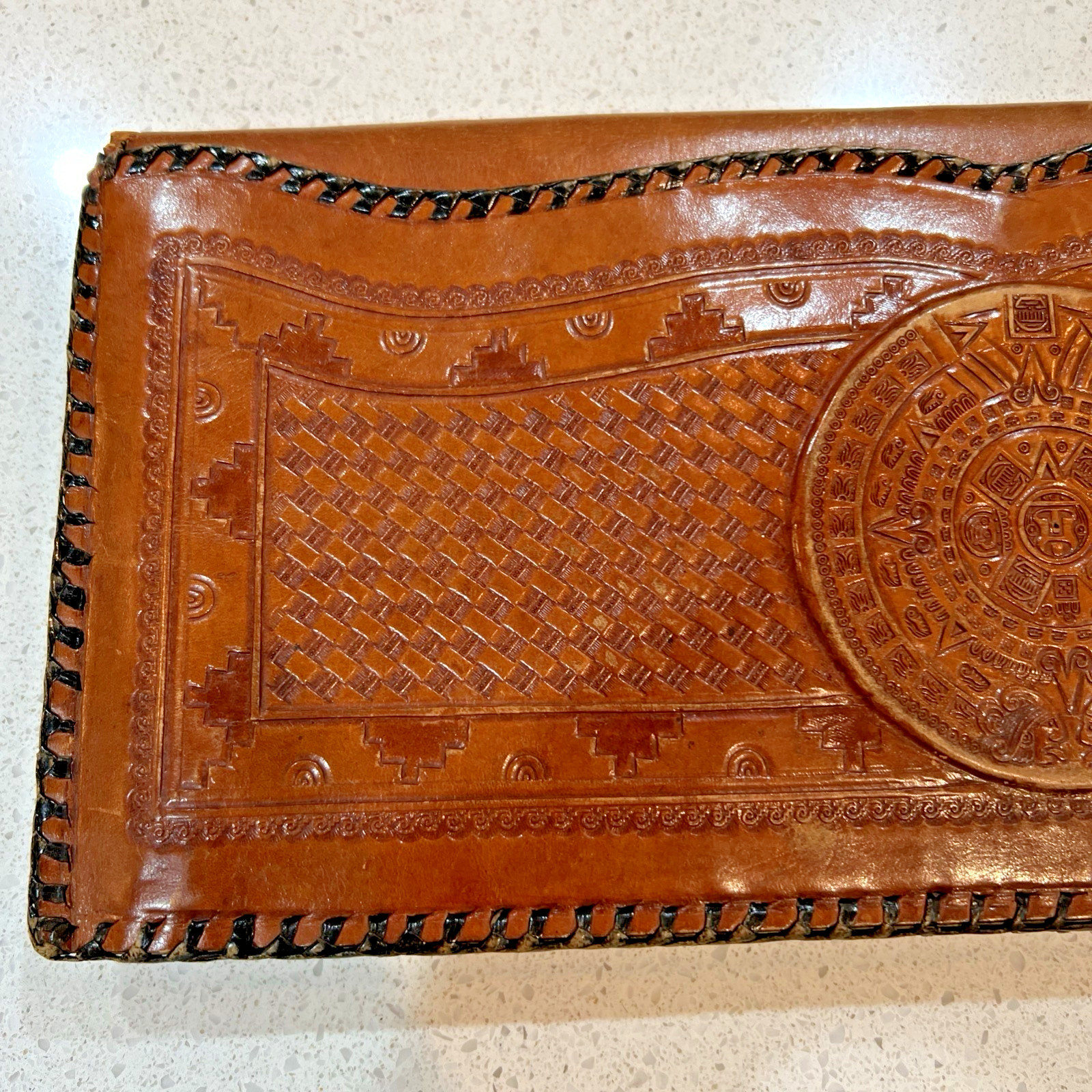 как выглядит VTG. 1940s MEXICAN HAND TOOLED LEATHER PURSE CLUTCH BUSINESS BAG LARGE 15 3/4" фото