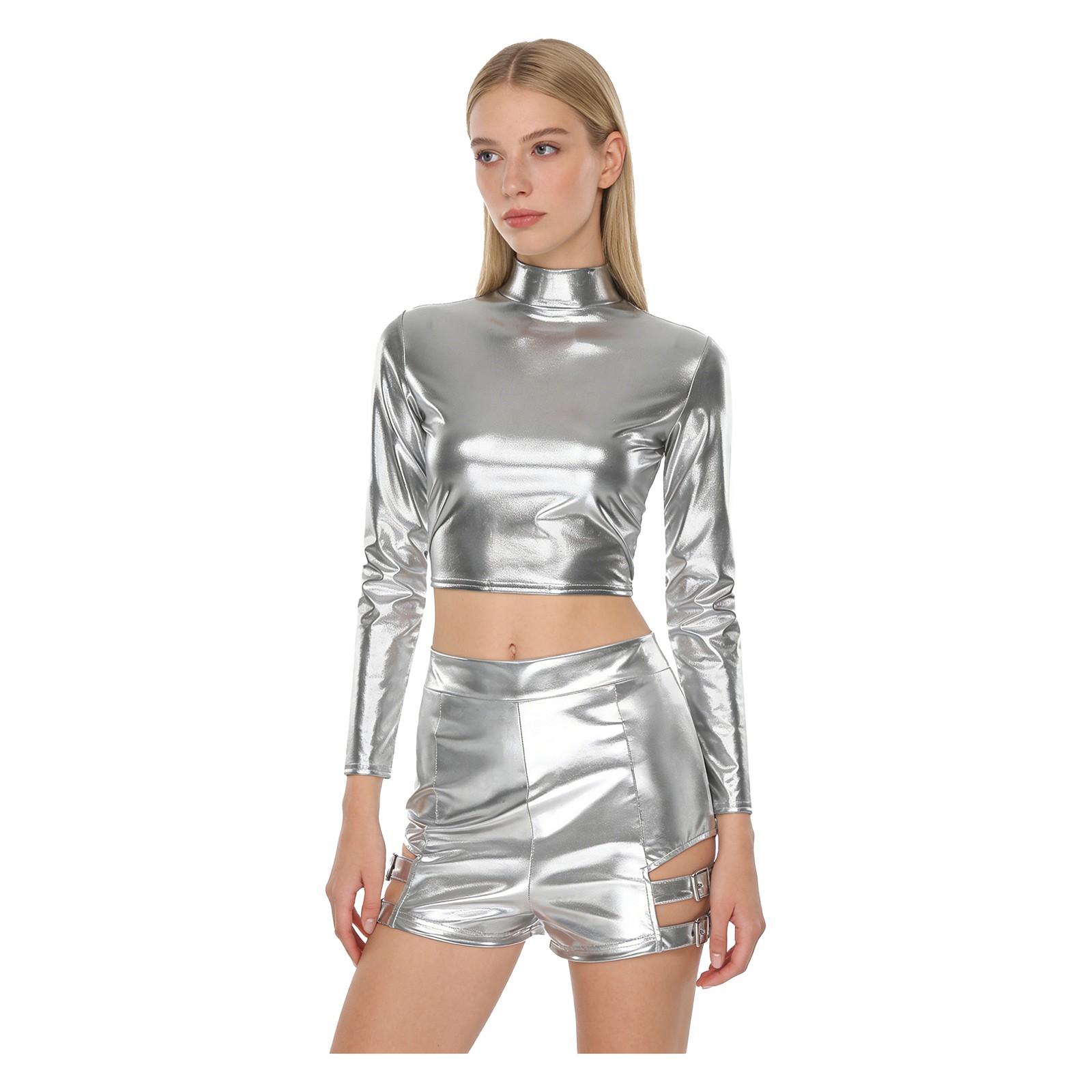 Womens Sets Costumes Dancewear Mock Neck Outfit Party Shiny Dance Clubwear