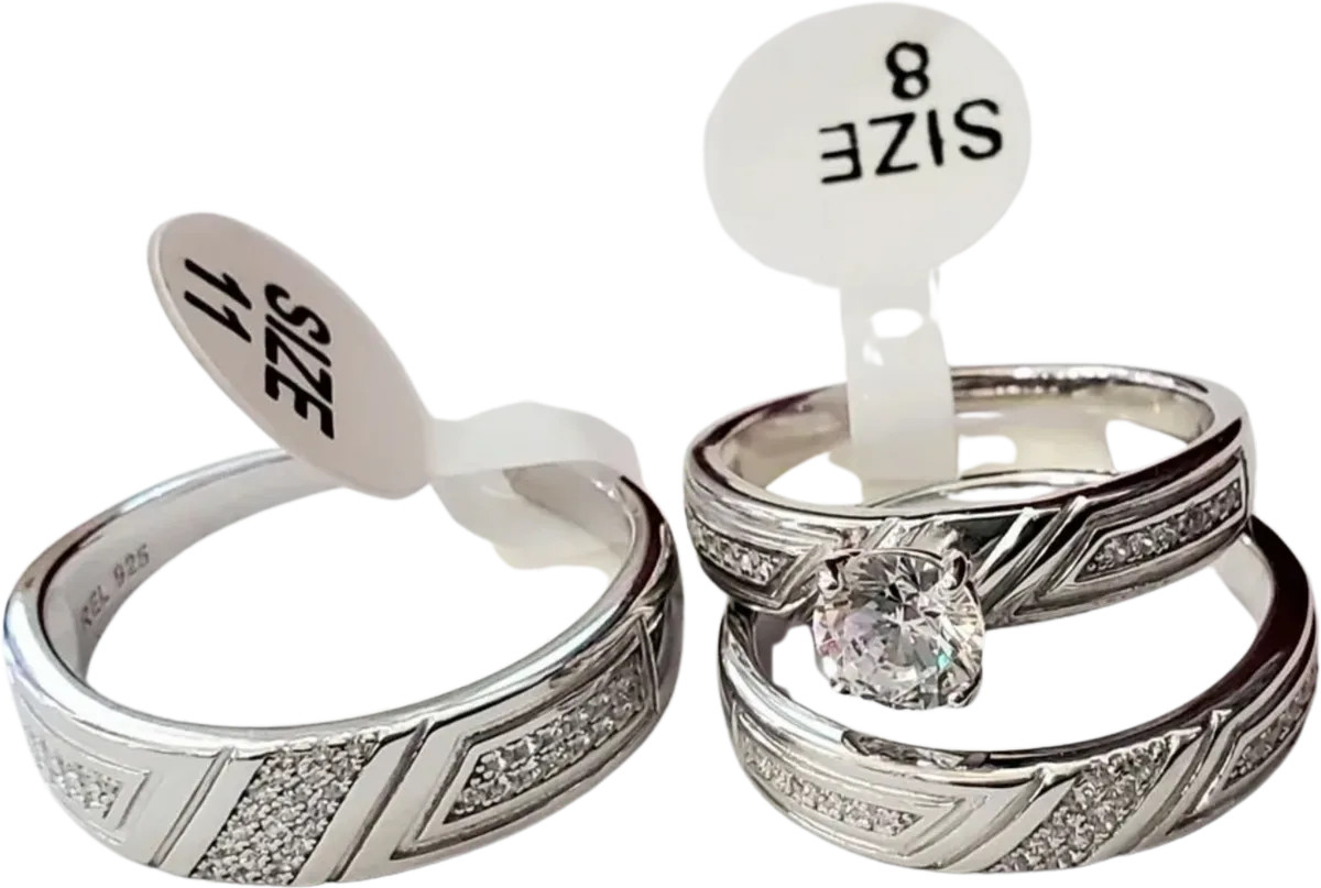 как выглядит Geo Sterling Silver Cubic Zirconia Bridal Engagement Ring Set By Clicks Trends фото