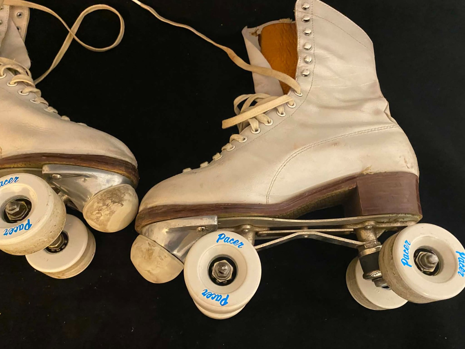 Vintage 1950s White Ladies Roller Skates Chicago Plates Hyde boots Pacer Wheels