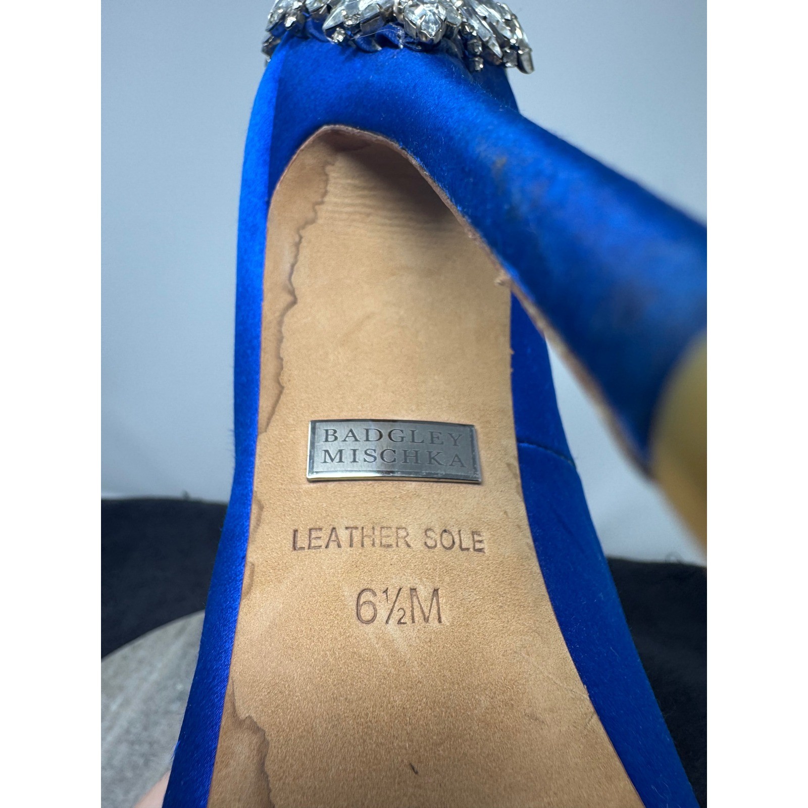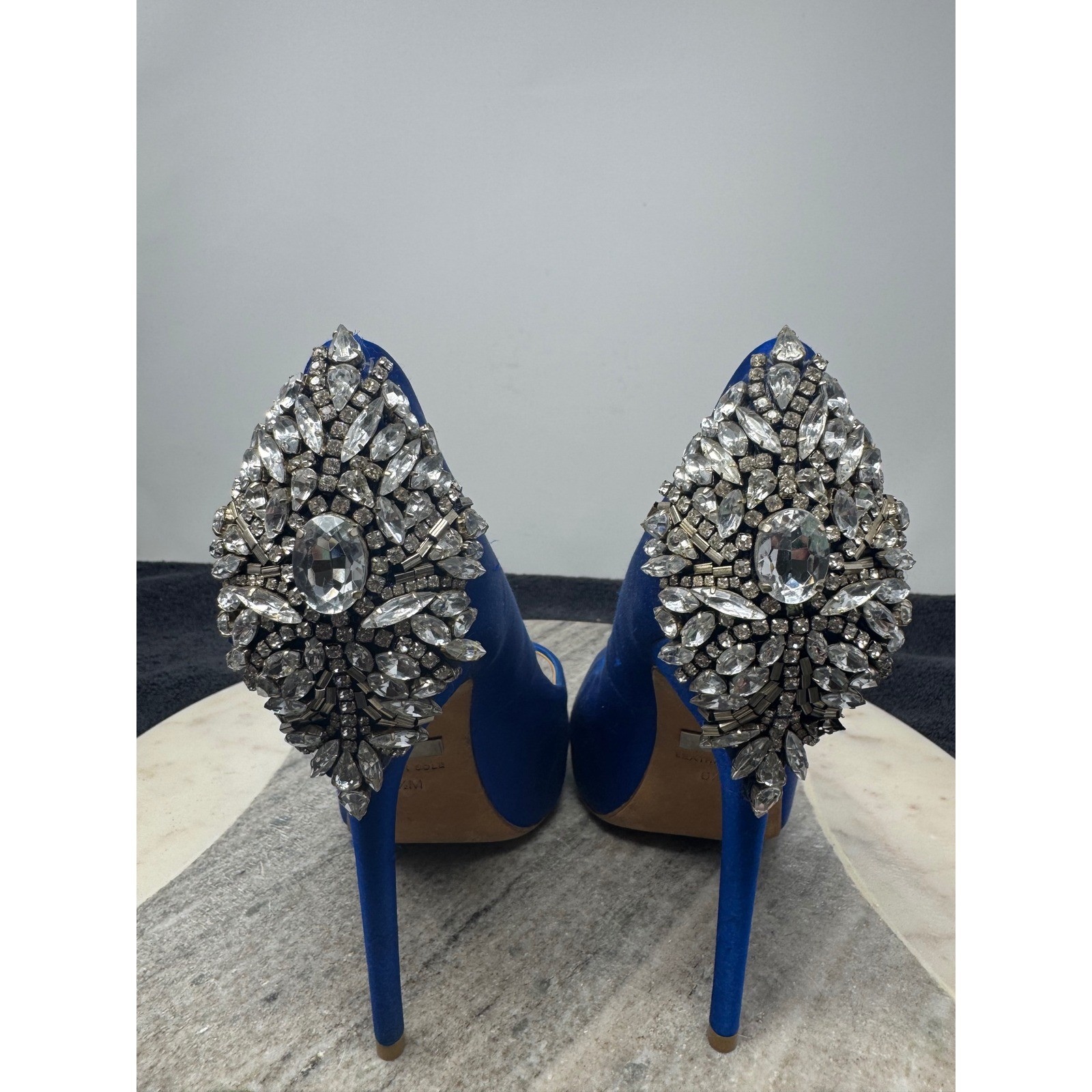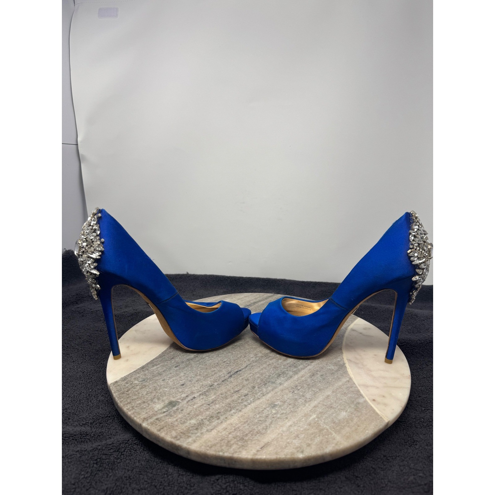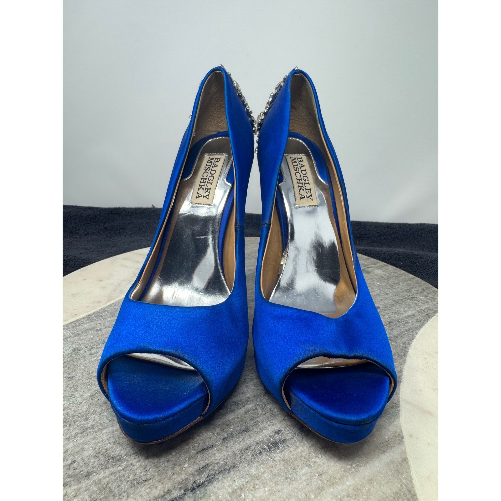 как выглядит Badgley Mischka Royal Blue Satin Peep Toe Embellished Rhinestones Heels Size 6.5 фото
