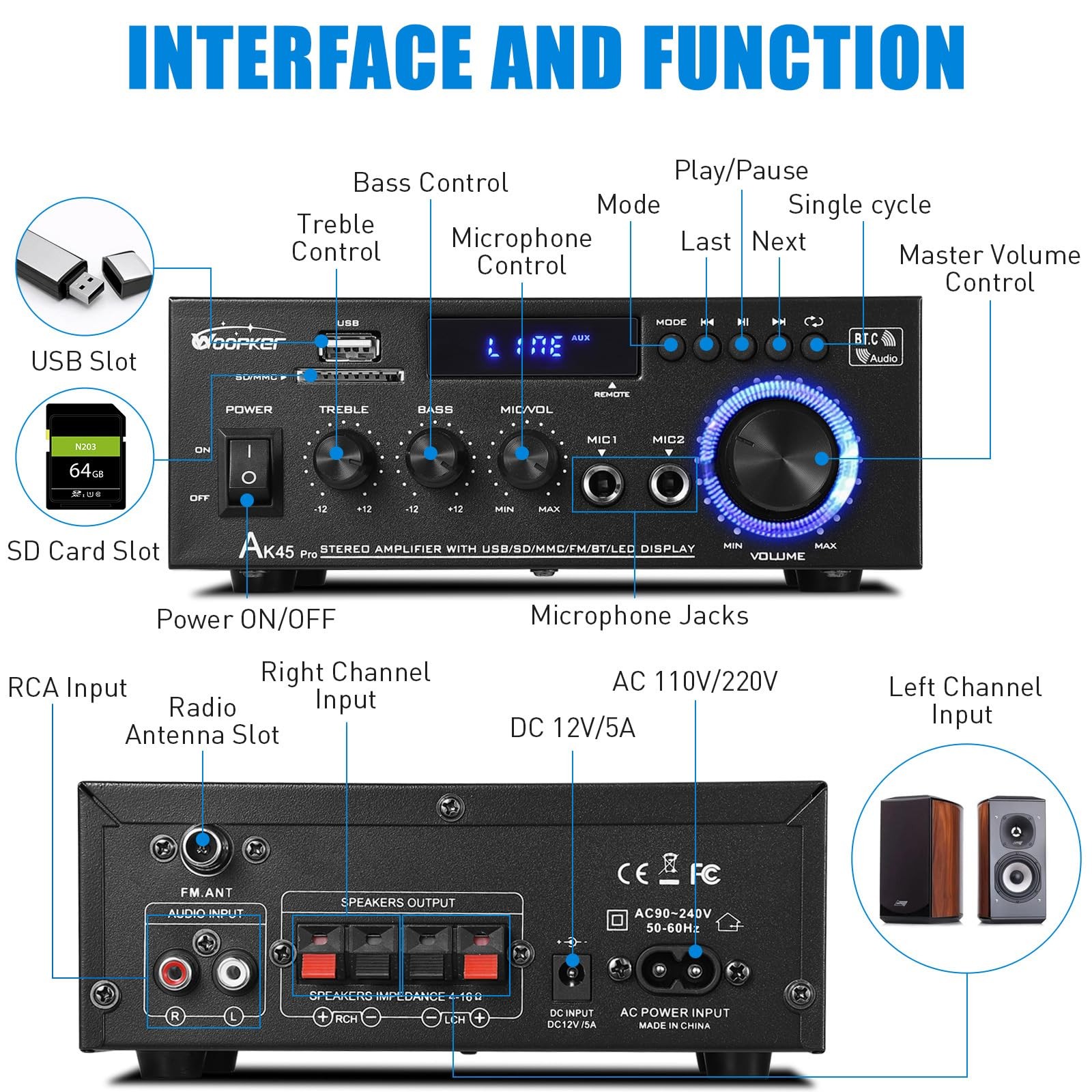 как выглядит AK45 Pro Amplifier Home Audio Stereo Receivers with Bluetooth 5.0,Max 400W,2.... фото