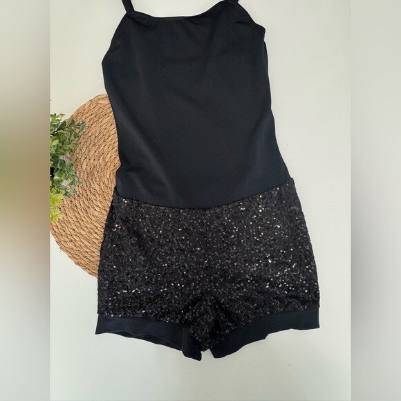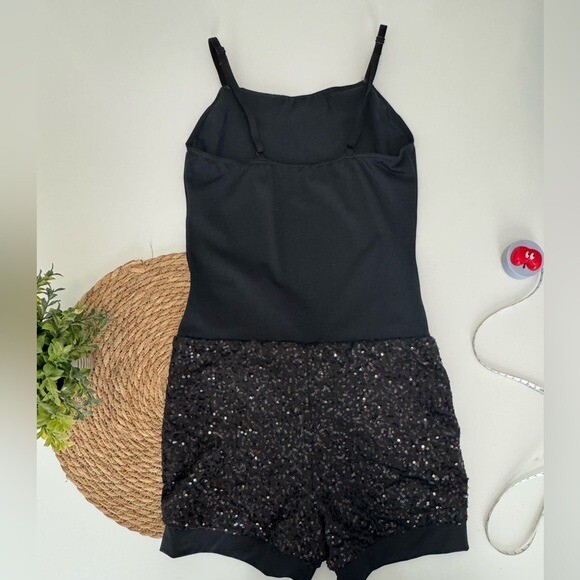 Weissman Black Sequin Romper Dance Gymnastics Leotard Jumpsuit