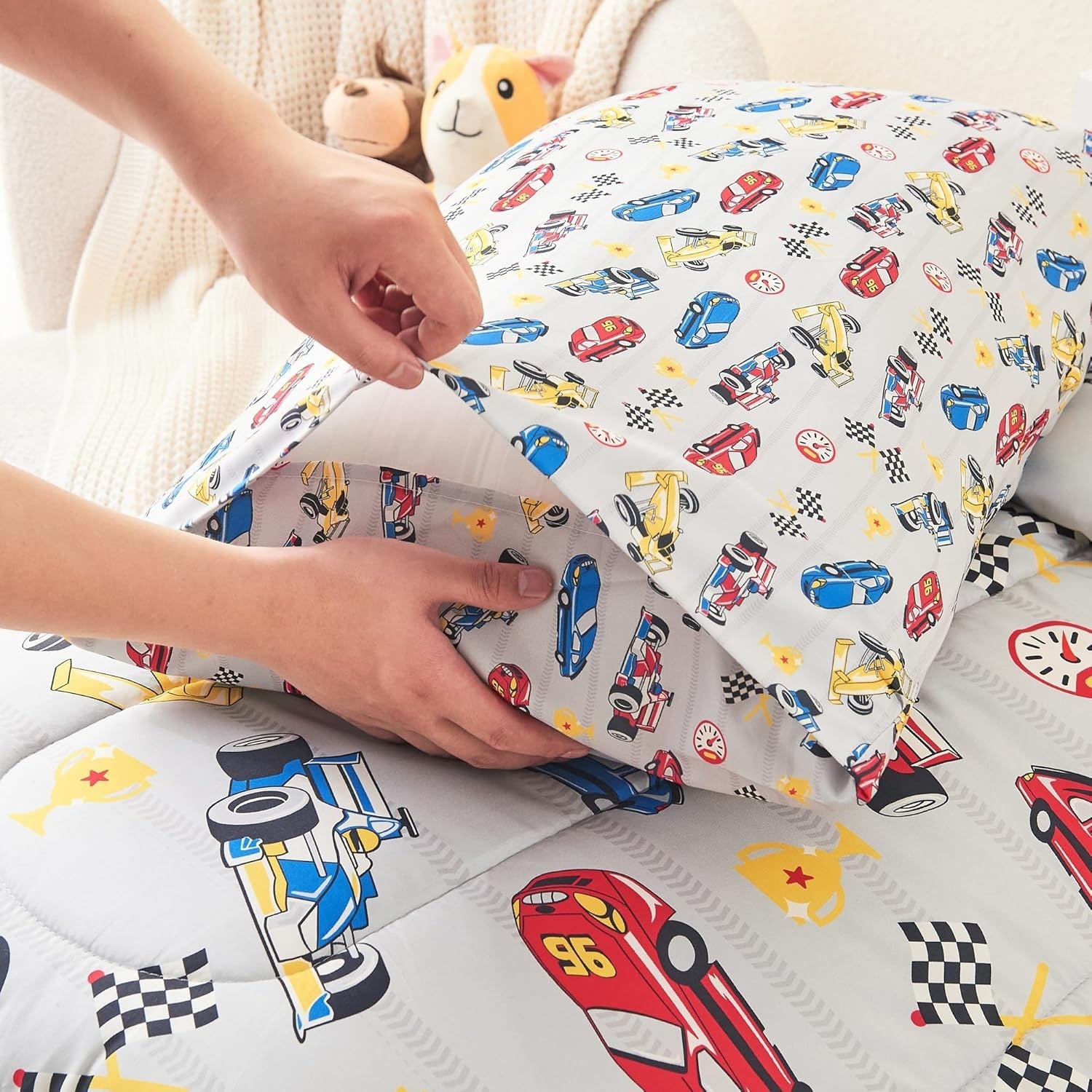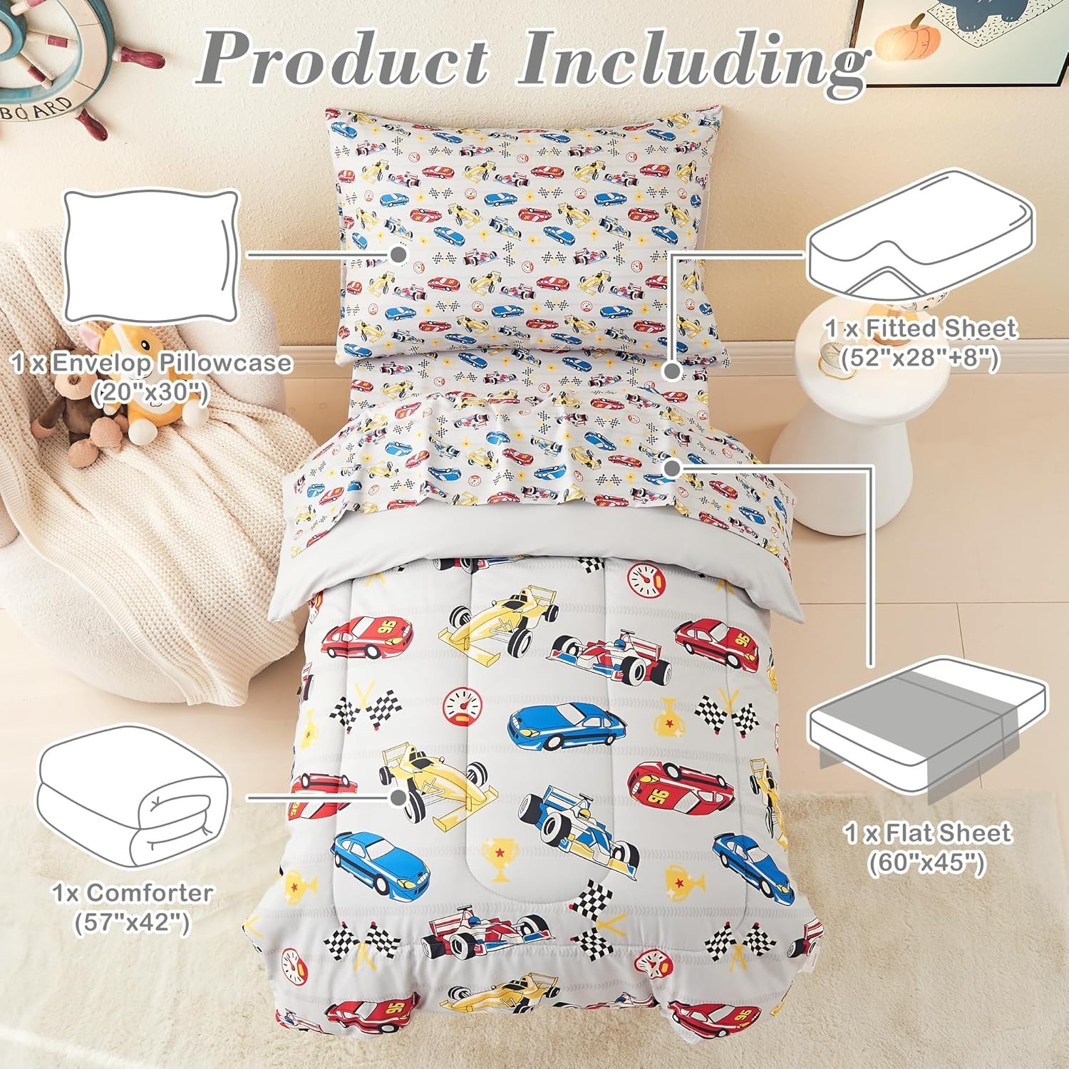 Adorable 4-Piece Toddler Bedding Set - Race Car Design for Bright Bedrooms