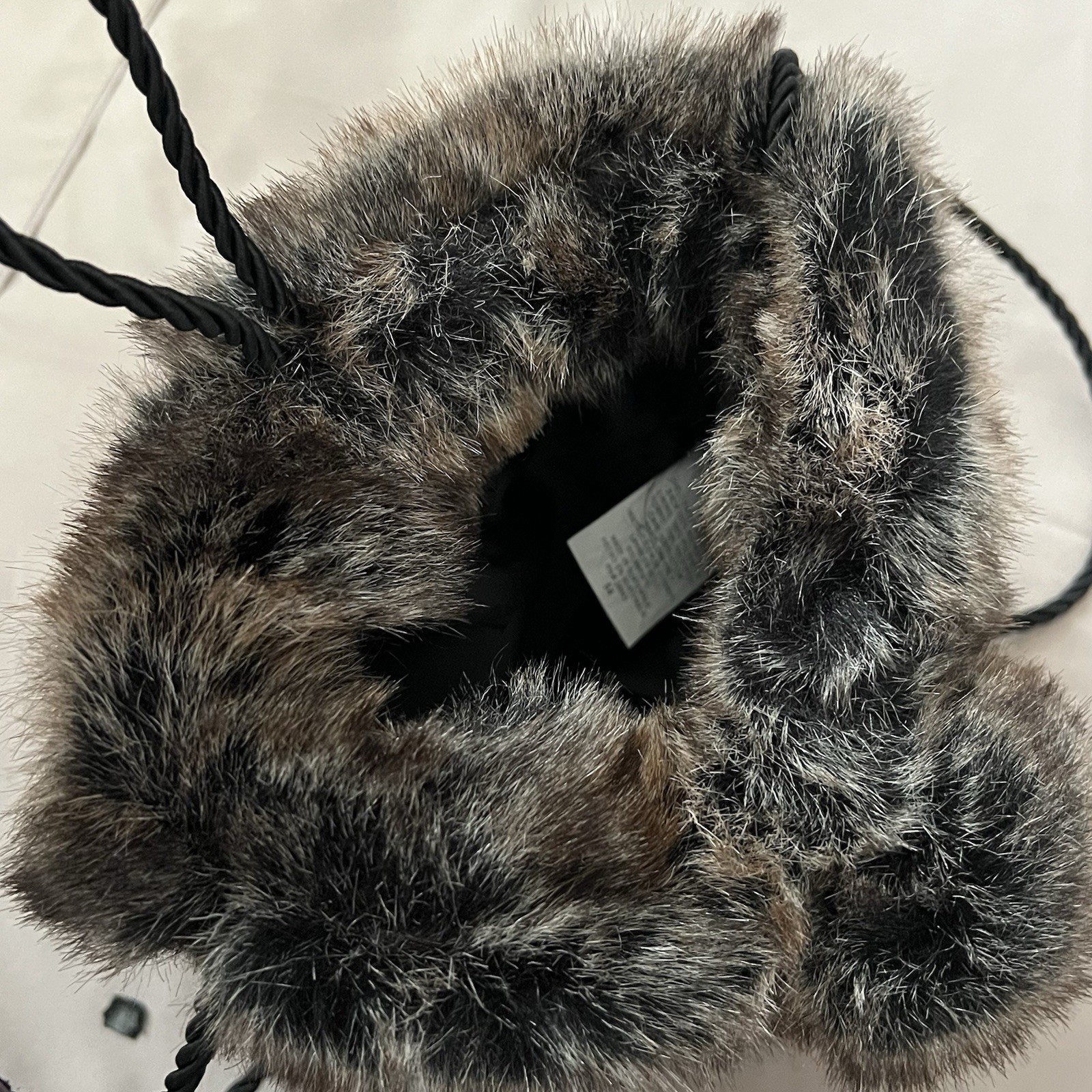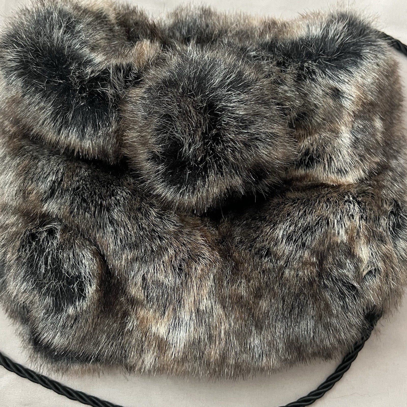 как выглядит Vintage 90s Brown Faux Fur Rothschild Crossbody Mini Purse With Pom Pom Closure фото