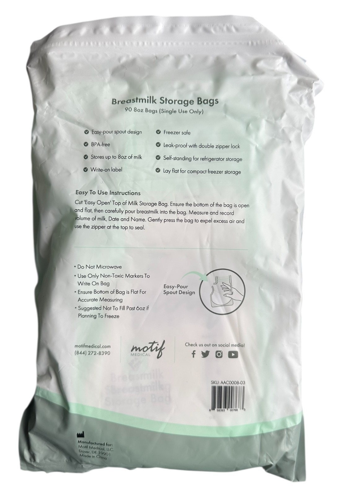 Lot of 4 Motif Breastmilk Storage Bags 8oz 90Ct Ea Total 360 Bags 60 Nursing P