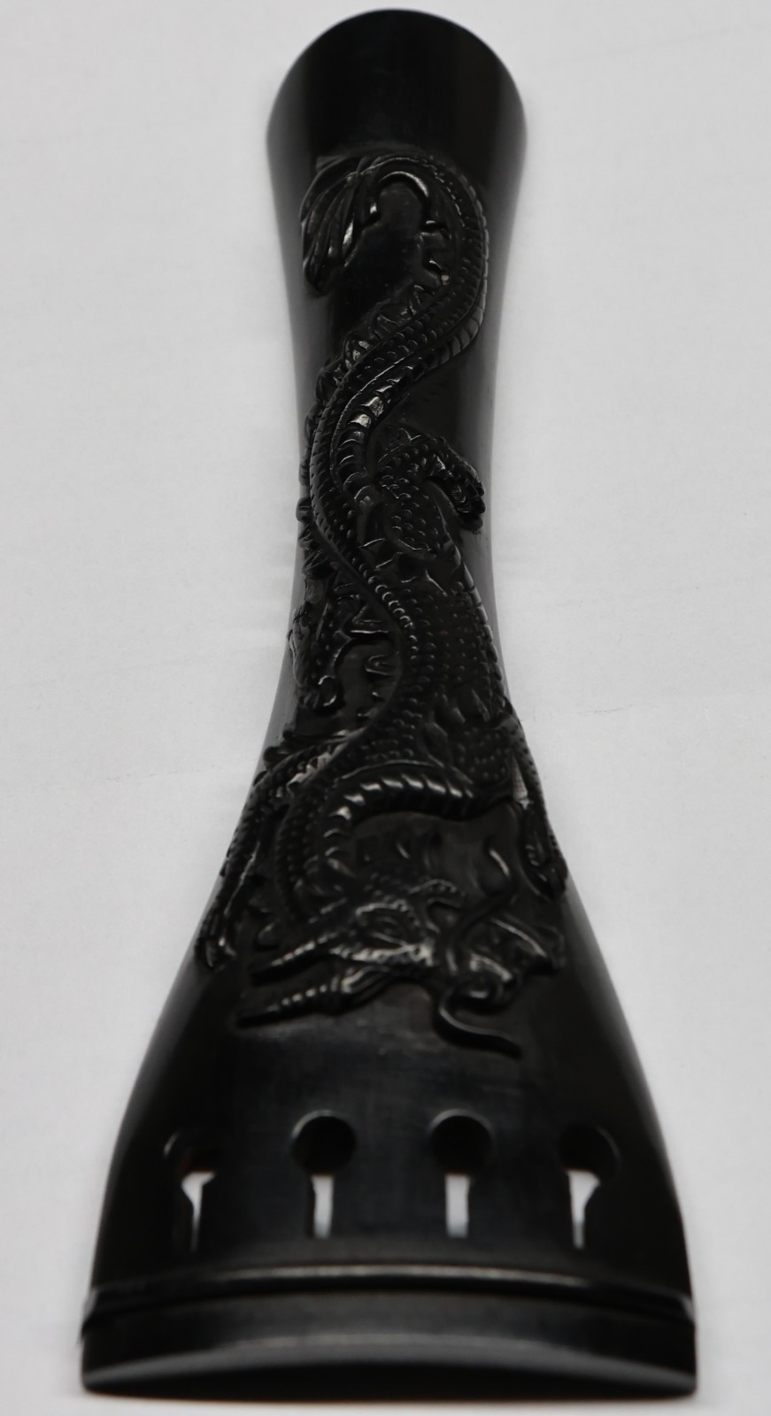 как выглядит Handmade Carved Ebony violin tailpiece 4/4. Dragon High Relief design 3 фото
