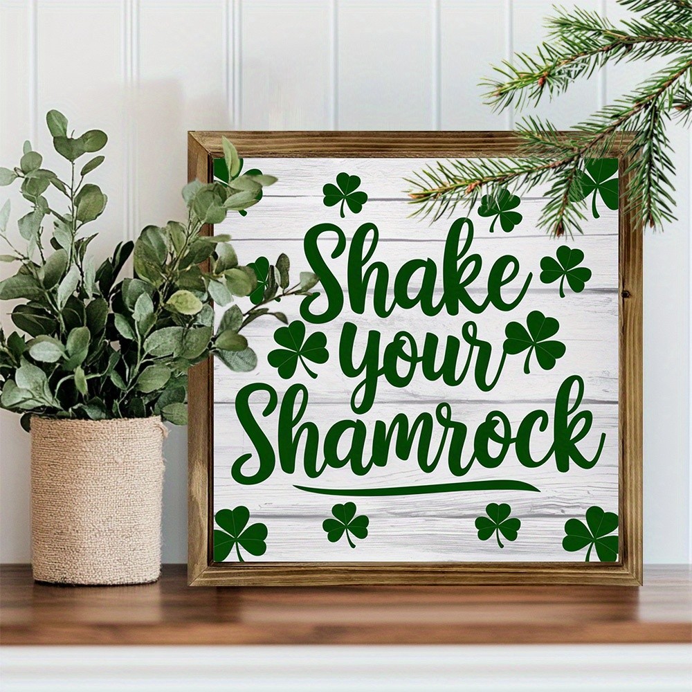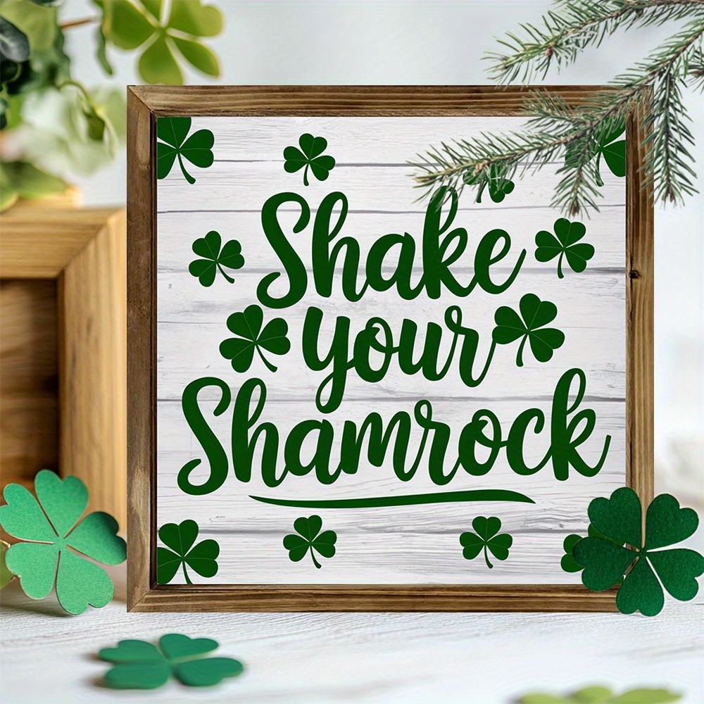 St. Patrick's Day Shake Your Shamrock Wood Sign Farmhouse Clover Shamrock Decor