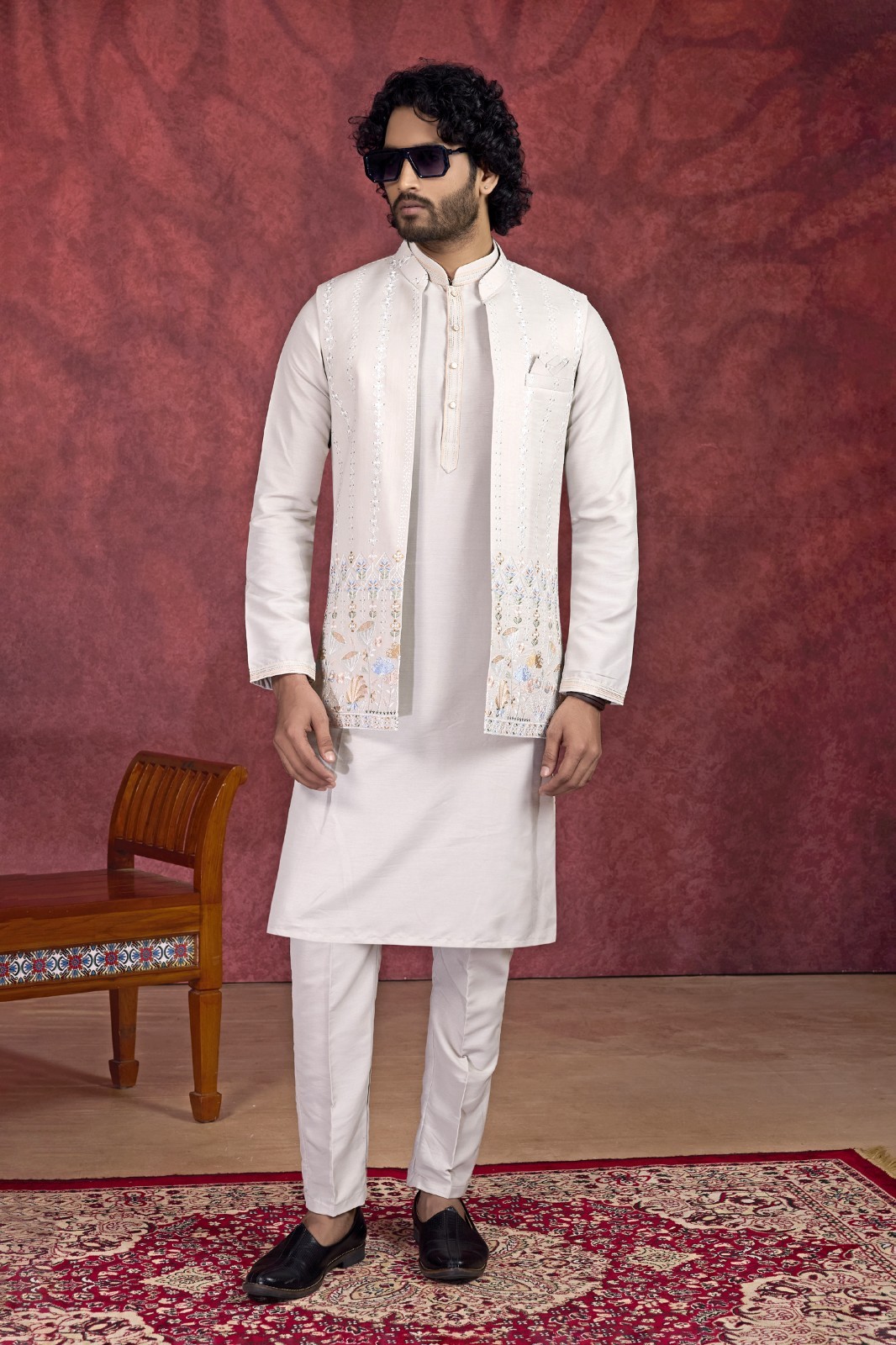 Mens Designer Wedding Bollywood Eid Party Wear Kurta Payjama Jacket Set India