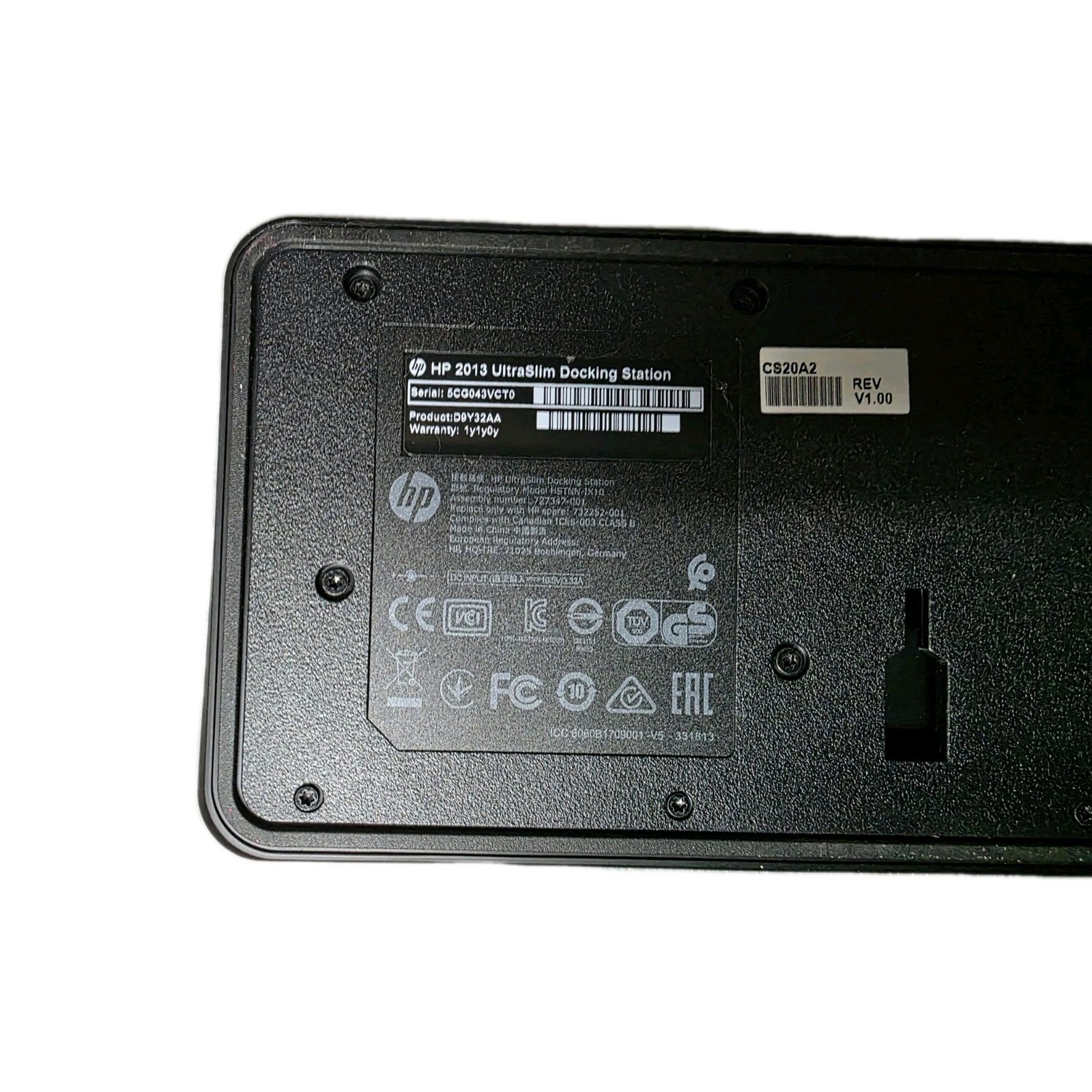 HP D9Y32AA 2013 UltraSlim Docking Station Power Cord Elitebook Probook