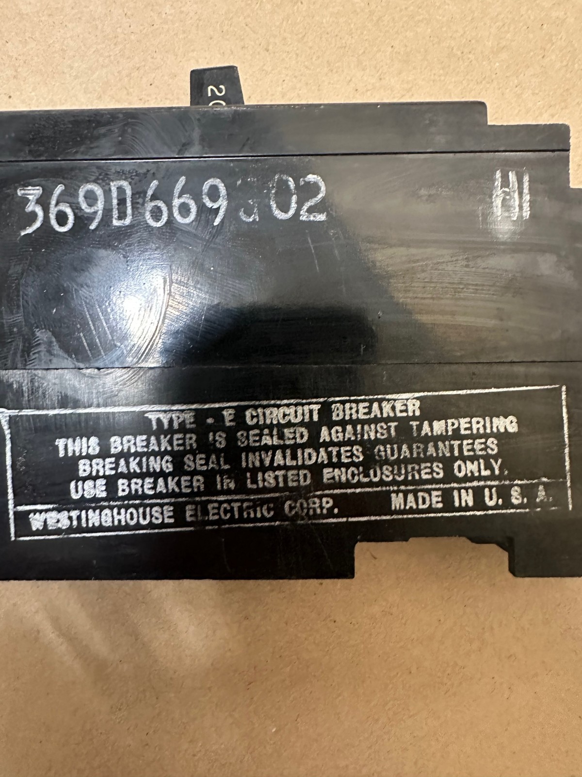 как выглядит Westinghouse Type-E 20A 1 Pole Circuit Breaker - Lot of 2 фото