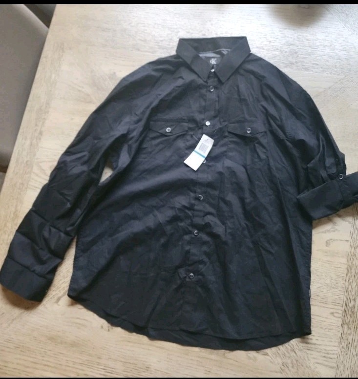как выглядит Calvin Klein Shirt Mens Size XL Black New NWT CK Roll Up Button Sleeves фото