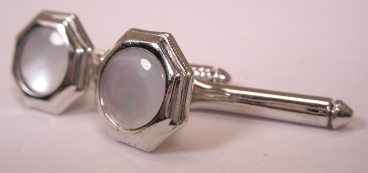 SINGLES 2 3/8 White MOP Octagons Vintage Formal Tuxedo Prom Shirt Stud a214