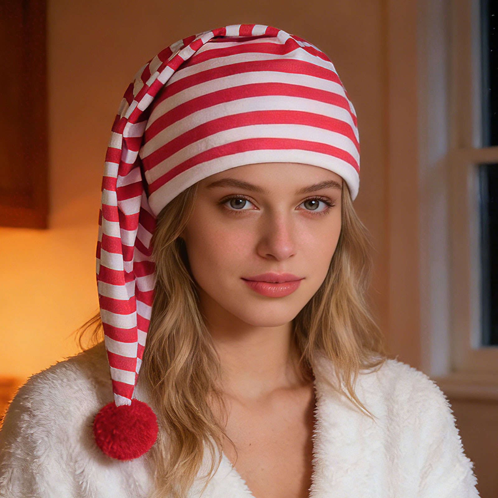 Adult Night Cap Adjust Sleeping Caps Striped Pajama Hat w/Pom Ball Christmas