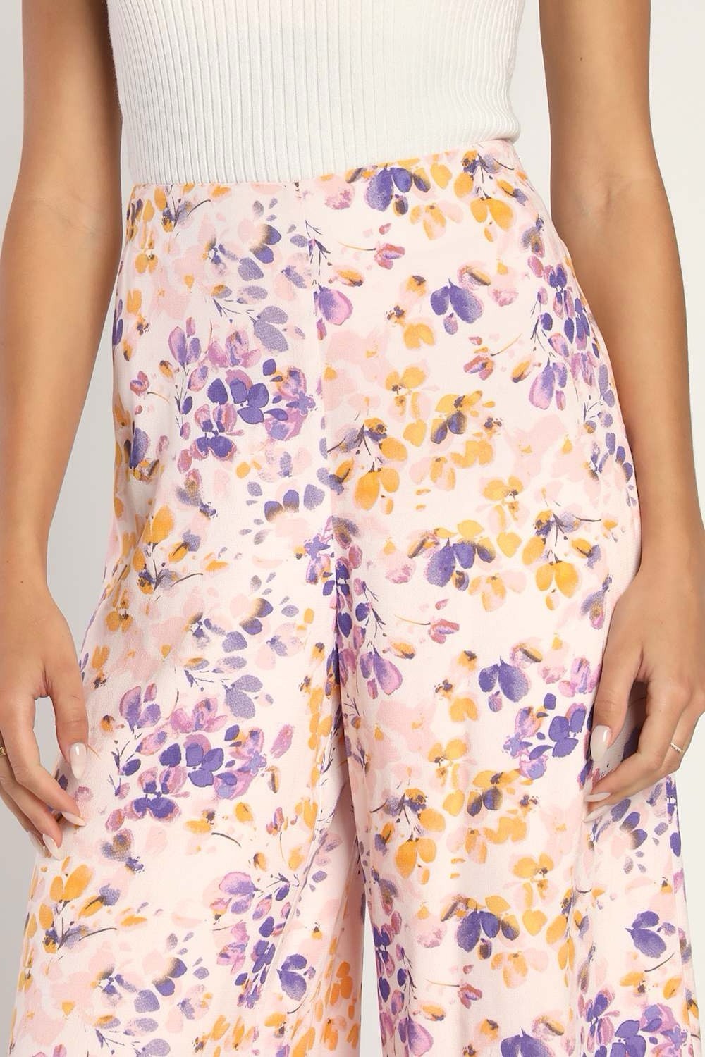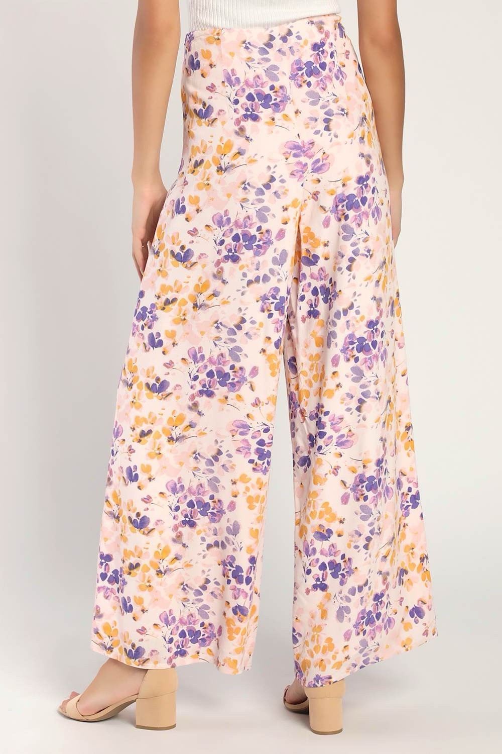 как выглядит Lulus Blooming Thriving Blush Pink Floral Wide Leg Pants Small Fits 4-6 фото