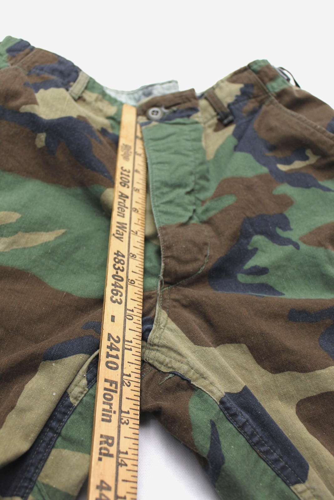 Vintage US Army BDU Pants Mens 30x27 Woodland Camo Cargo Adjustable Military 80s