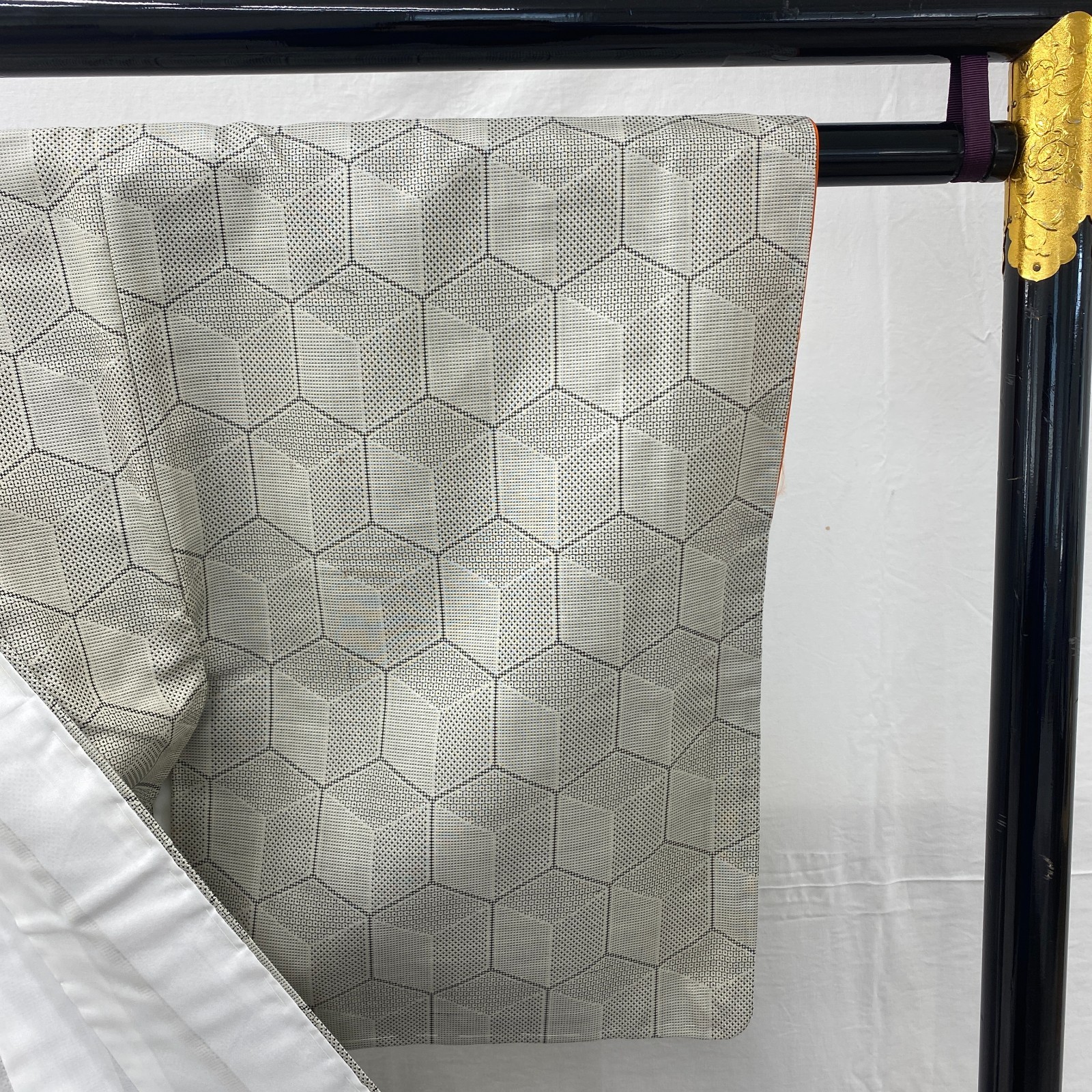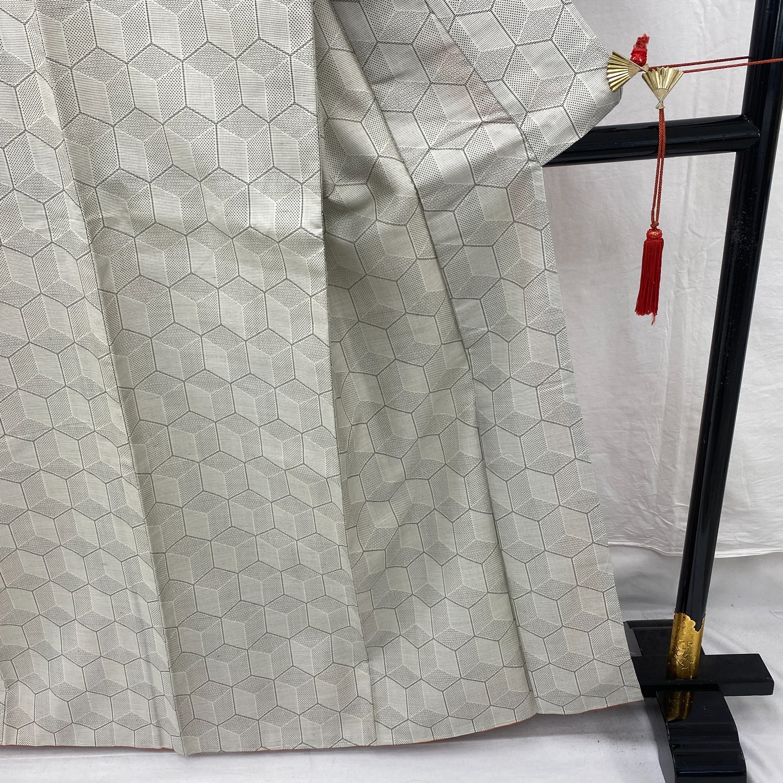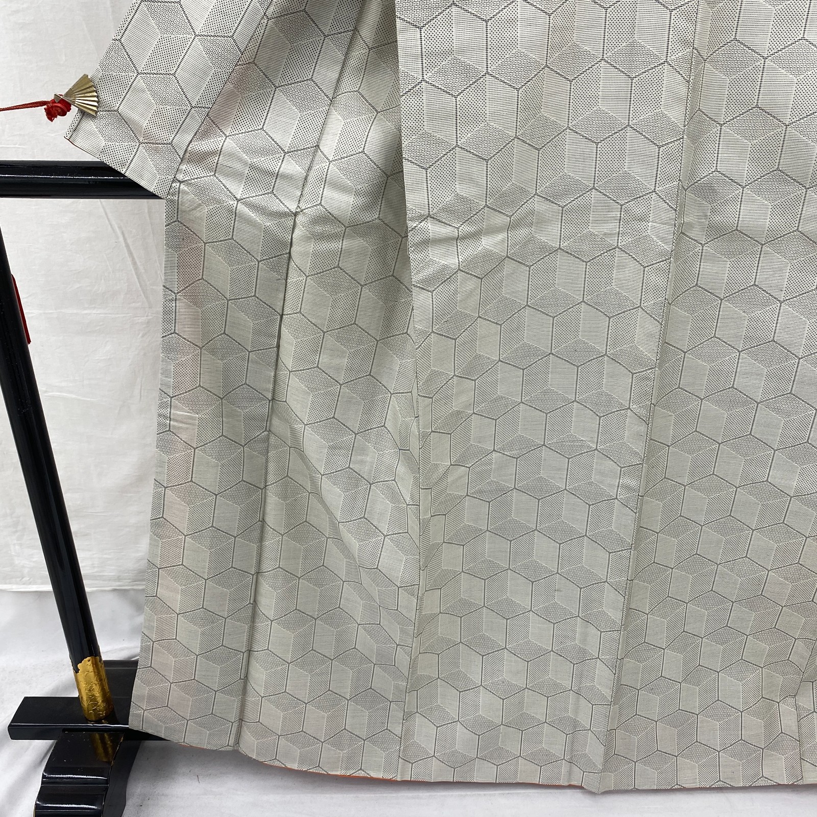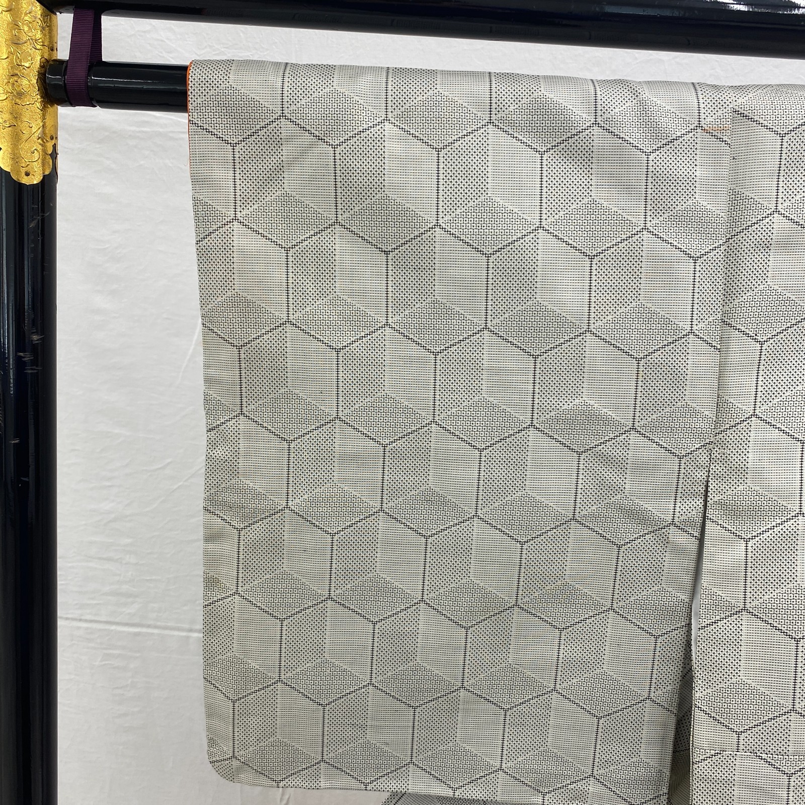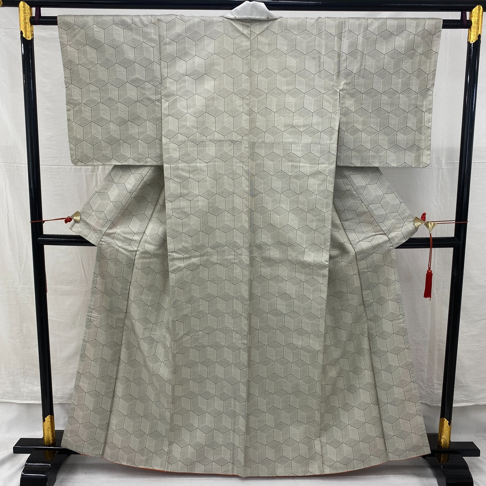 как выглядит Japanese Vintage Kimono Silk Gray Oshima Tumugi Traditional Authentic Length62in фото