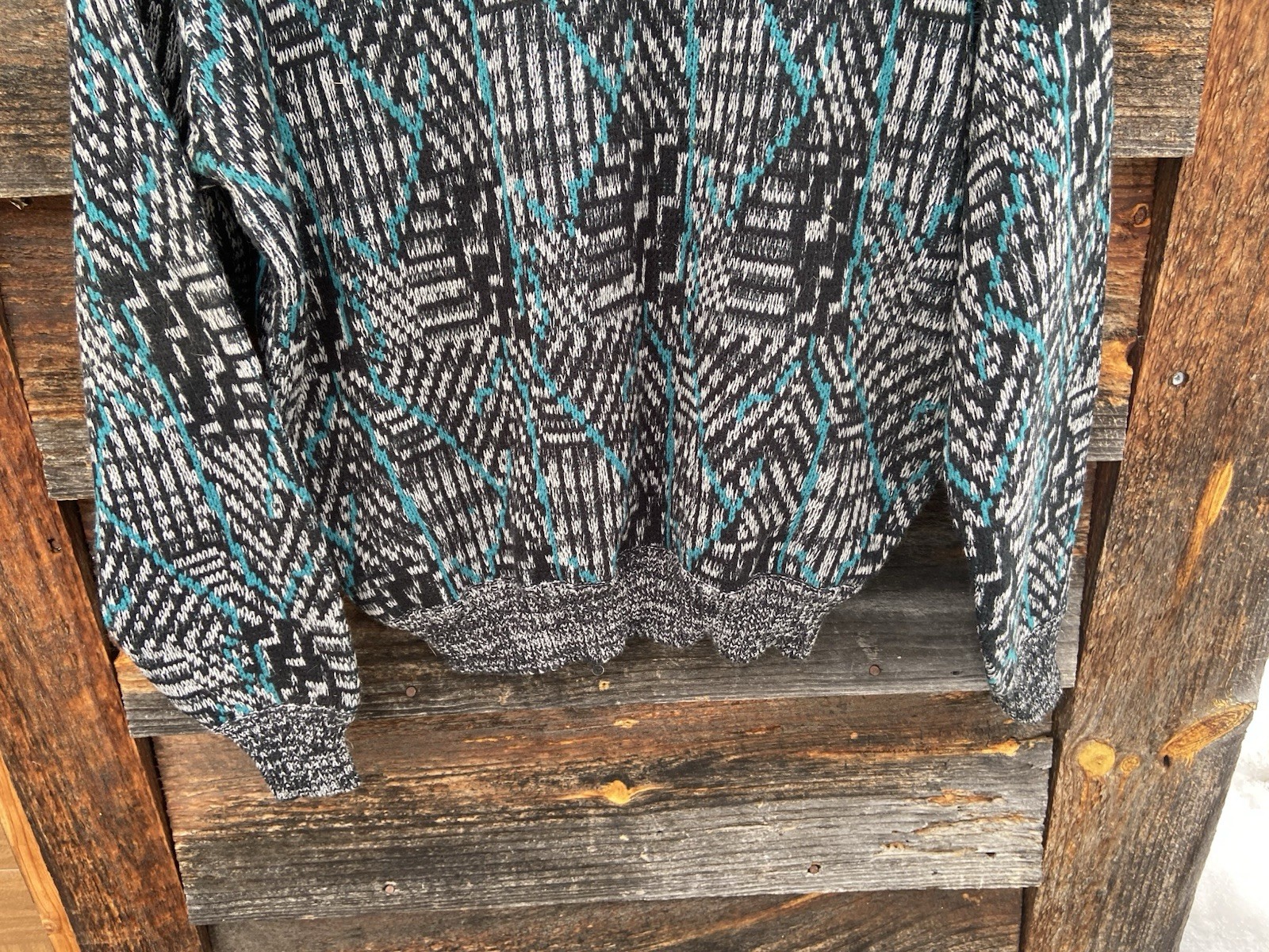 как выглядит Vintage 90s Art Abstract Pattern Chunky Knit Baggy Grandpa Sweater Mens XL retro фото