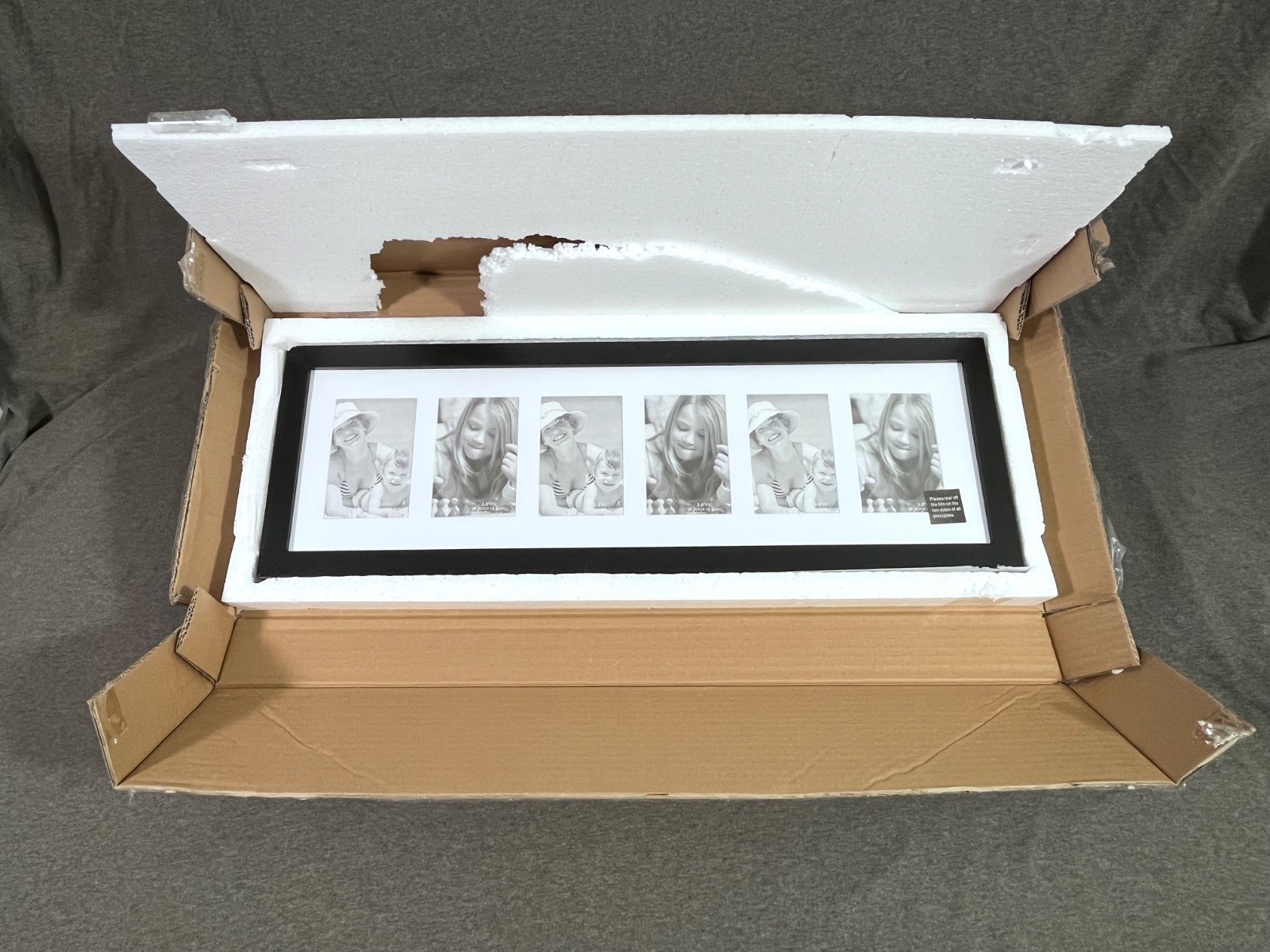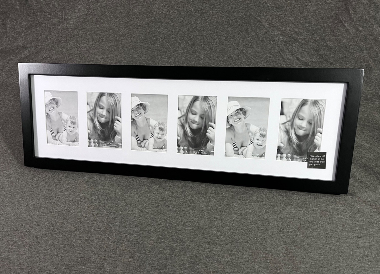 9x26 Multi Photo Frame 6 Openings for 4x6 Pics Collage Black Wood Matted NIB
