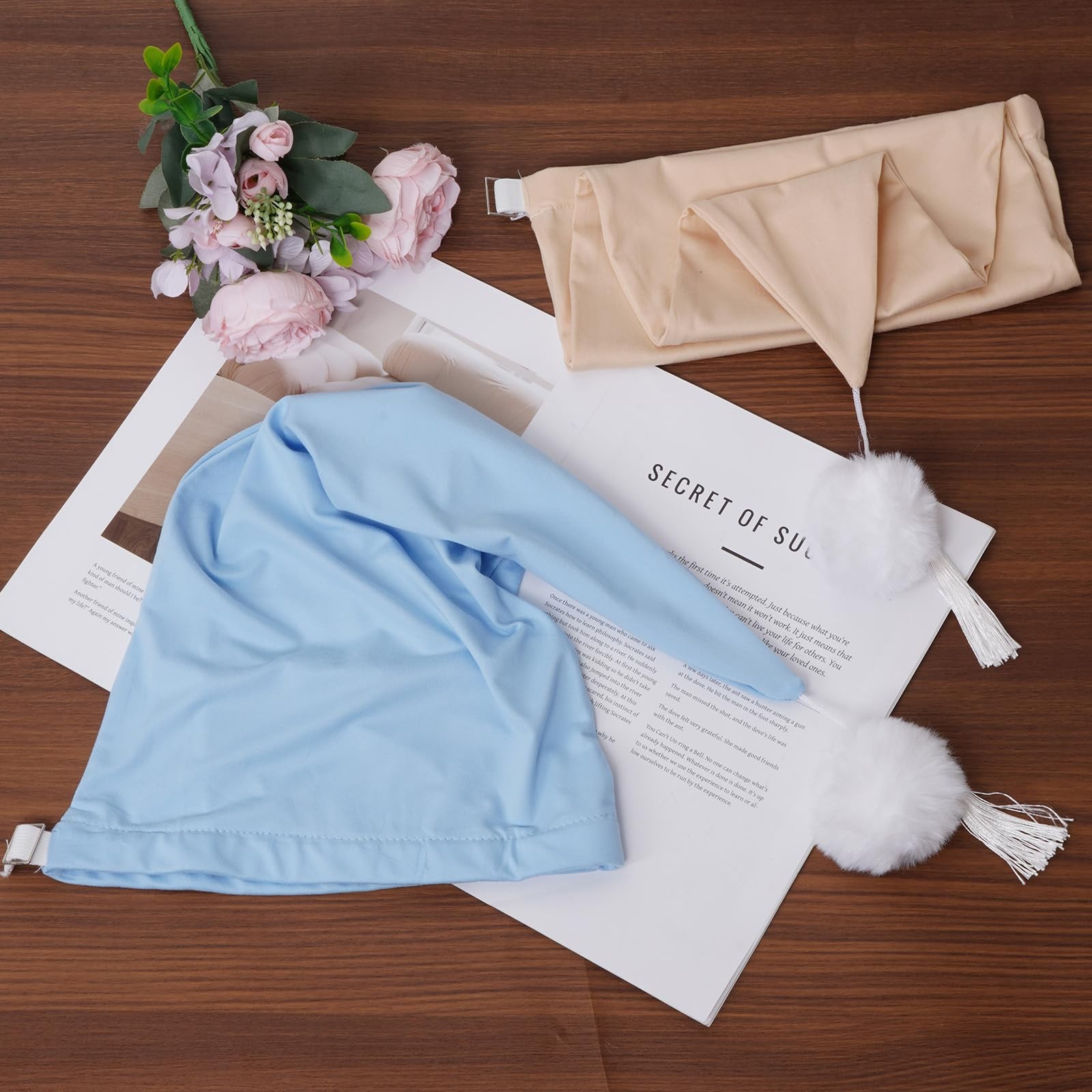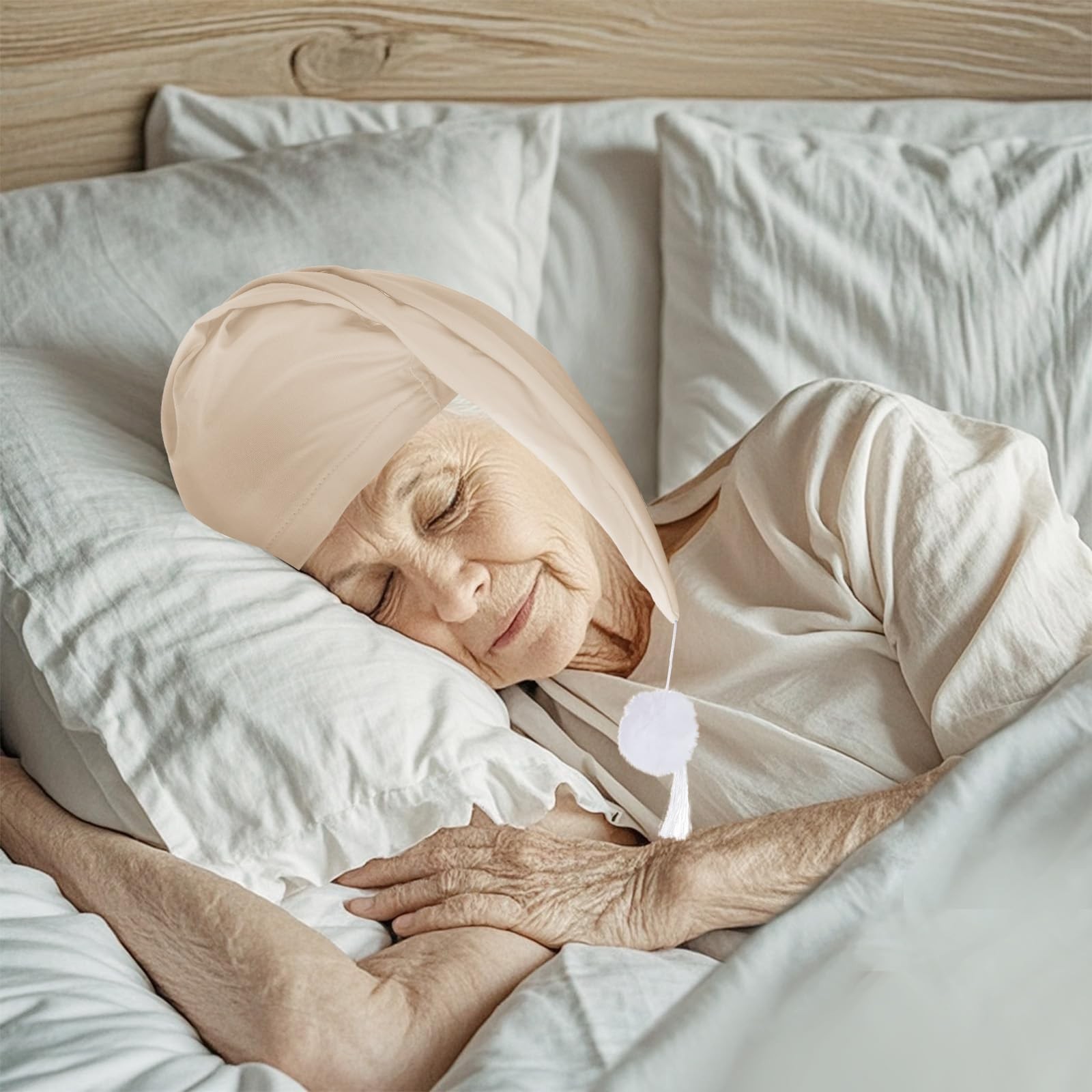 как выглядит 2pcs Mens Night Sleeping Cap Adjustable Pajama Cap with Pom Ball and Tassel ... фото