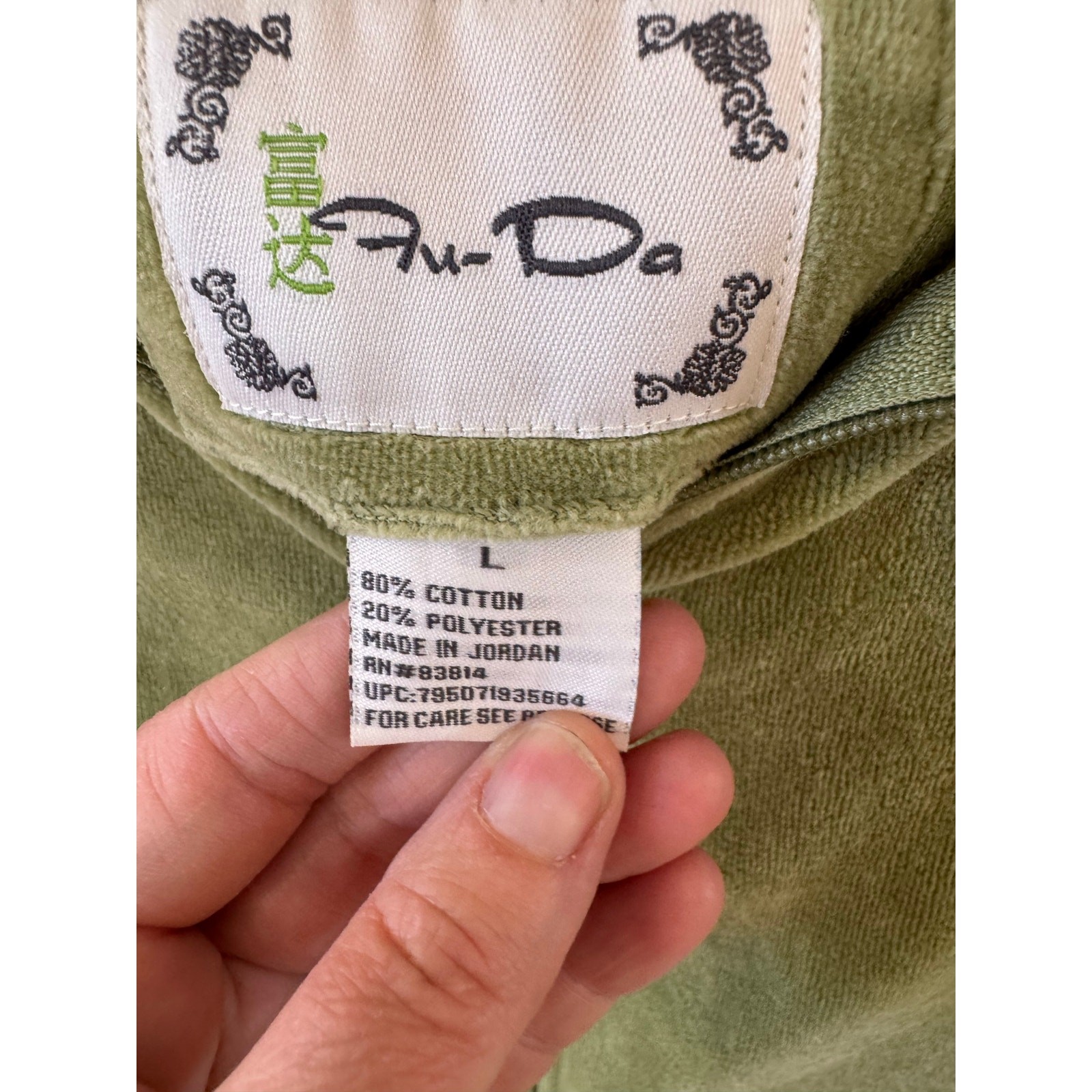 как выглядит Vintage Green Velour Lounge Set  Zip Jacket Drawstring Pant Size L фото