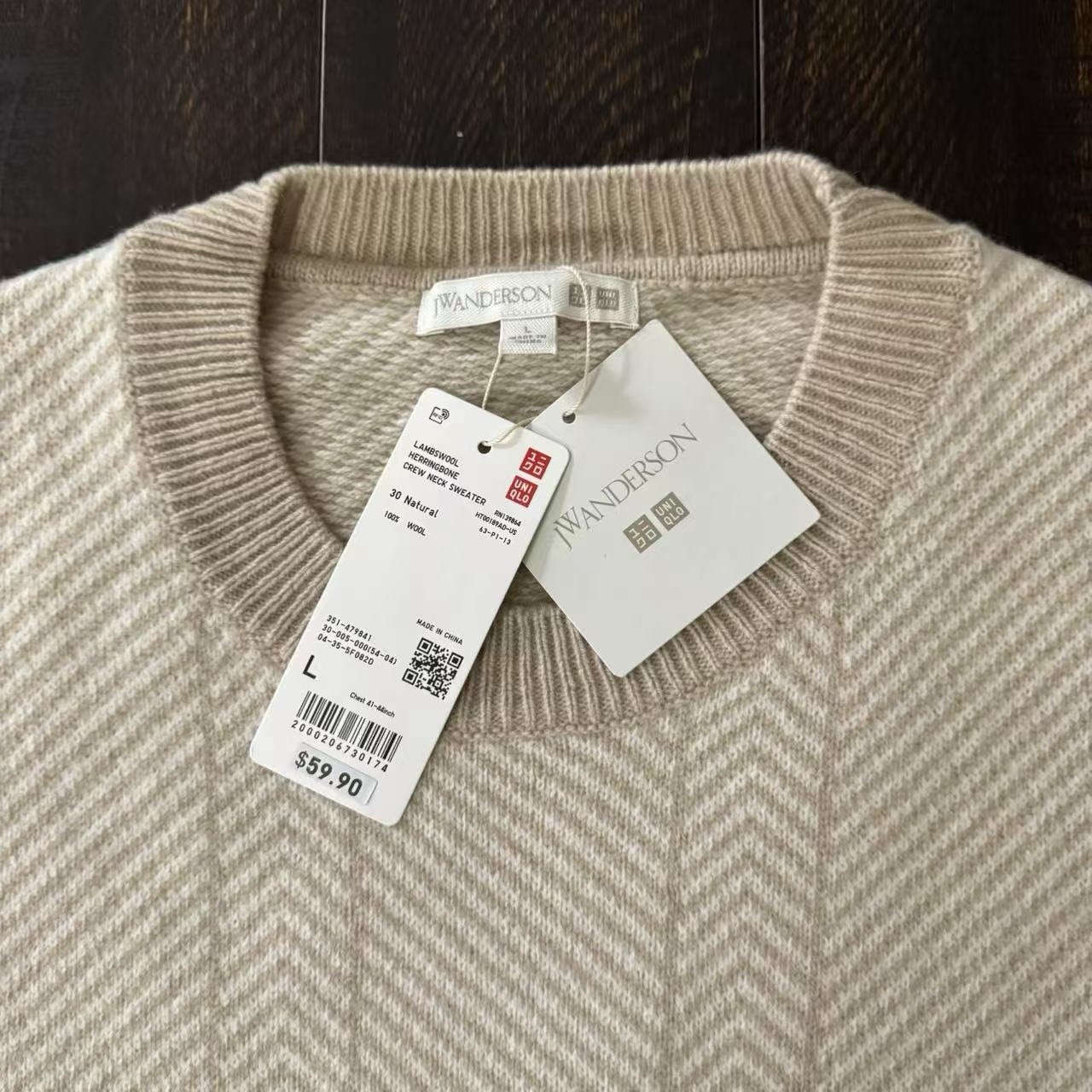 Uniqlo x JW Anderson Lambswool Herringbone Crewneck Sweater Natural Size L
