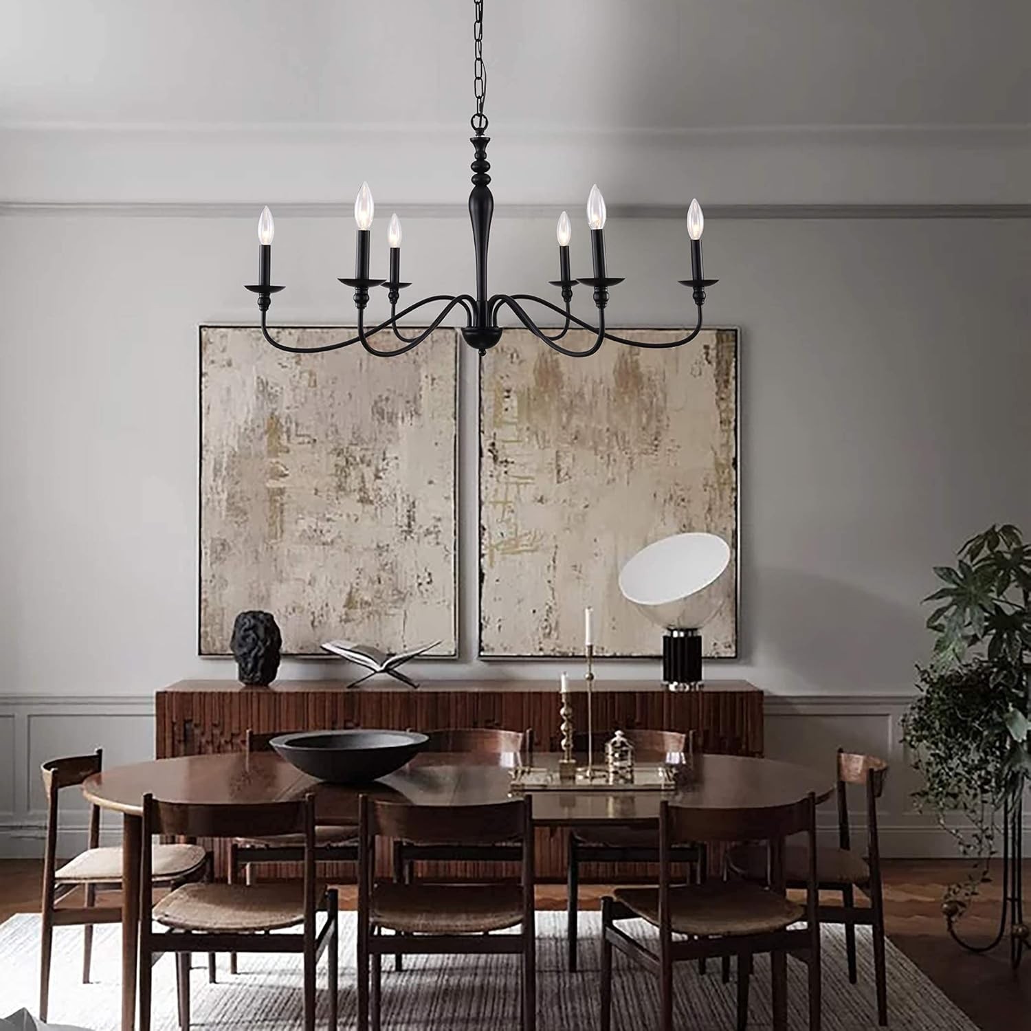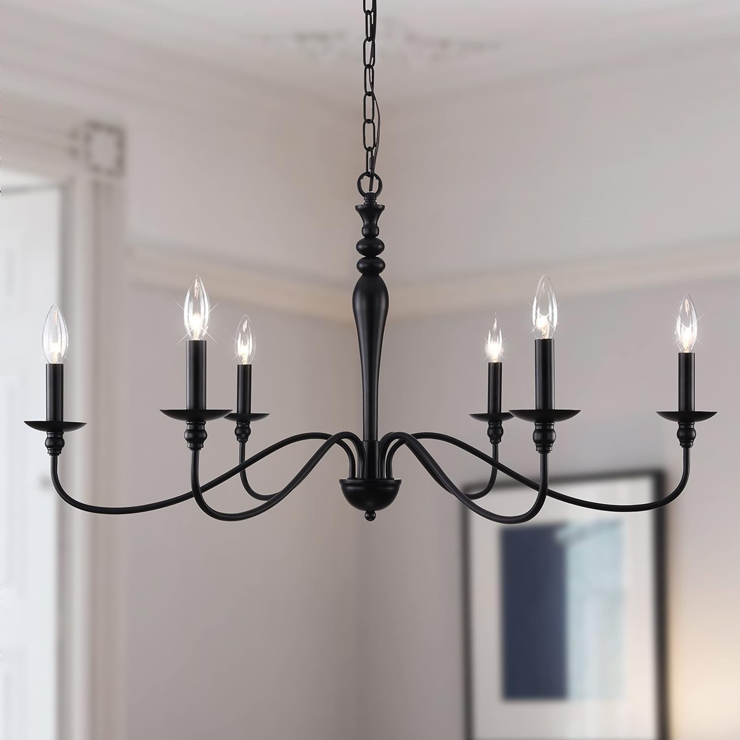 Farmhouse Chandelier 6-Light Black Industrial Classic Candle Ceiling Rustic Pend