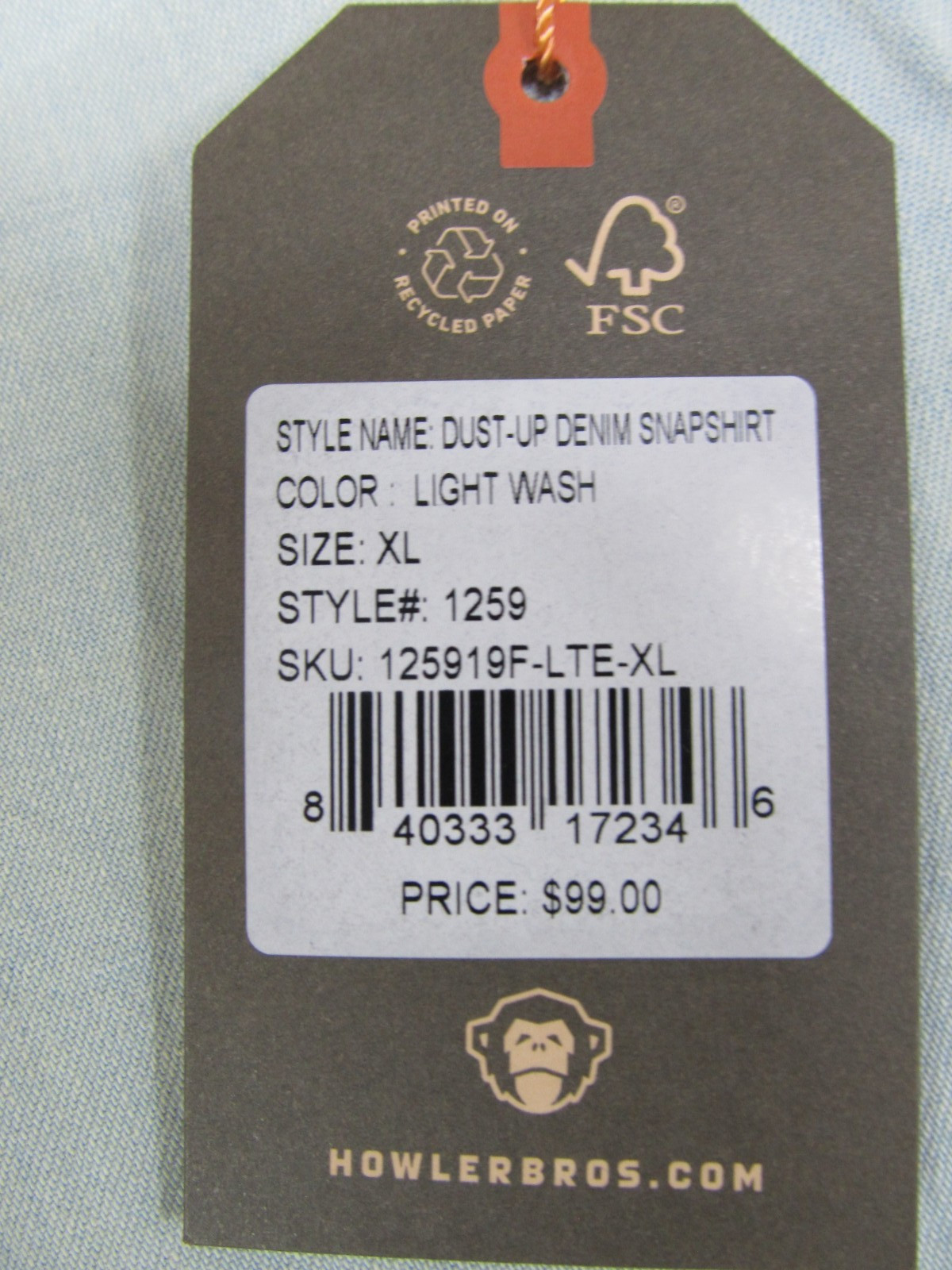 Howler Bros. Dust Up Denim Men's XL Snapshirt - Light Wash - NWT - Style 1259