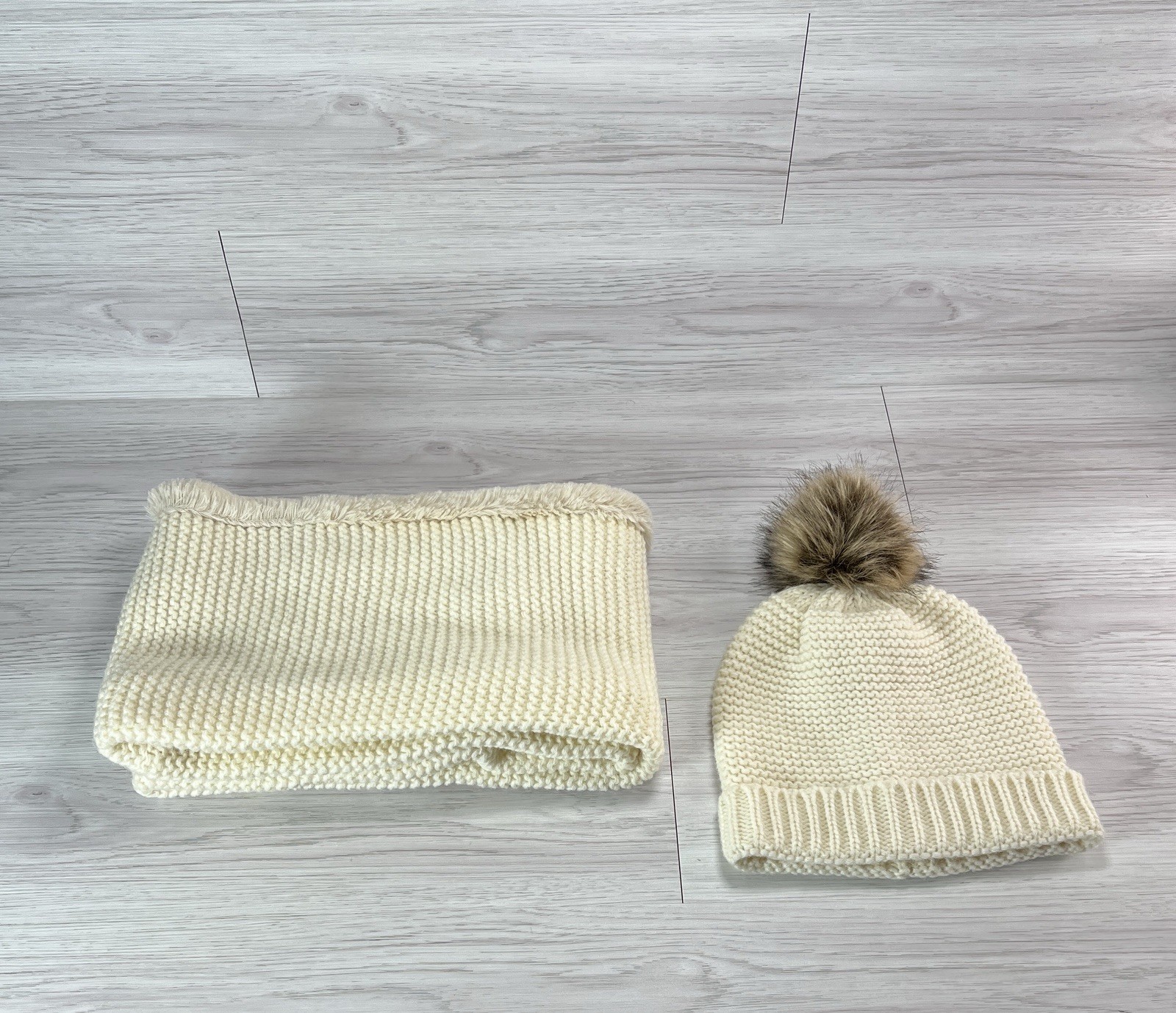 Hat Pom Pom Scarf Set 2 CHIC Womens Fur Faux Cream Knit Beanie Round PomPom New