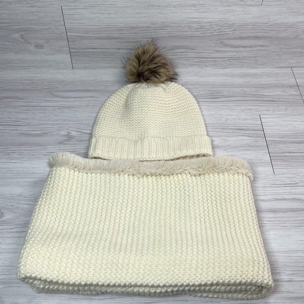 как выглядит Hat Pom Pom Scarf Set 2 CHIC Womens Fur Faux Cream Knit Beanie Round PomPom New фото