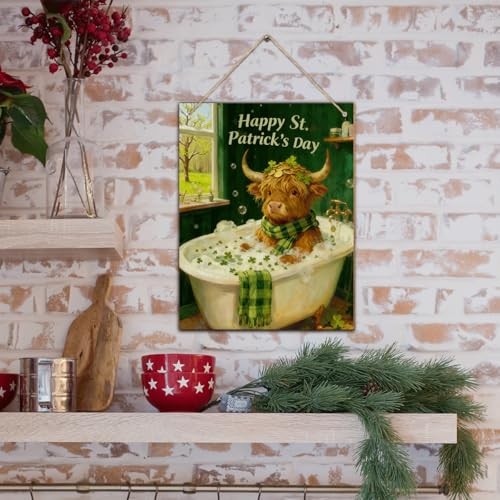 Highland Cow St. Patrick's Day Wall Art Decoration, Highland Cow in Bathtub