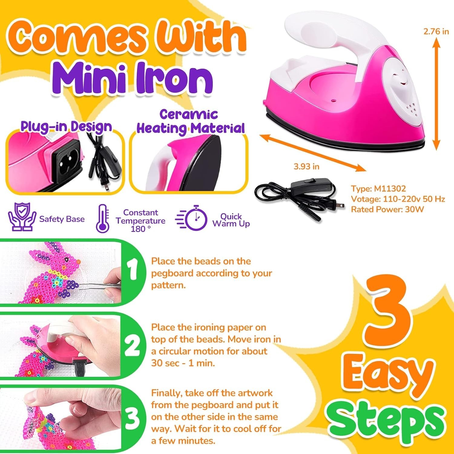 Board Fuse Beads Iron Set - Fuse Bead Kit for Kids Crafts with Bead Pegboard ...