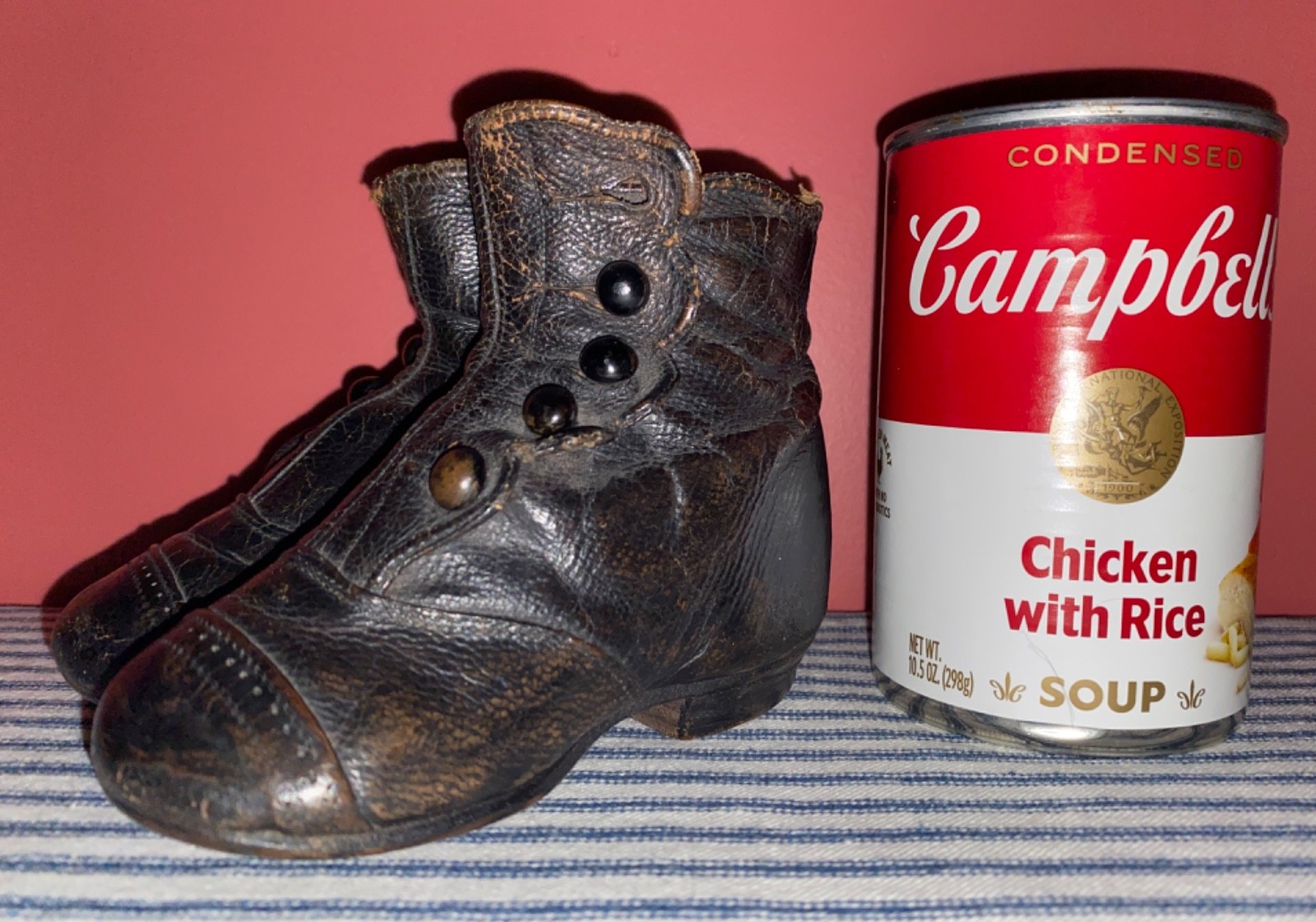 c. 1880 Early Baby Shoes with HEELS, High Button, Victorian Antique, Large Doll