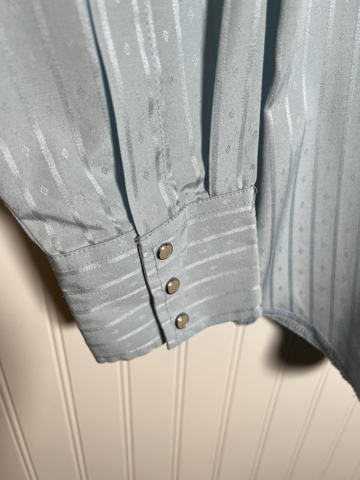 Men s Wrangler Western Shirt Light Blue Size S Dressy Pearl Snaps