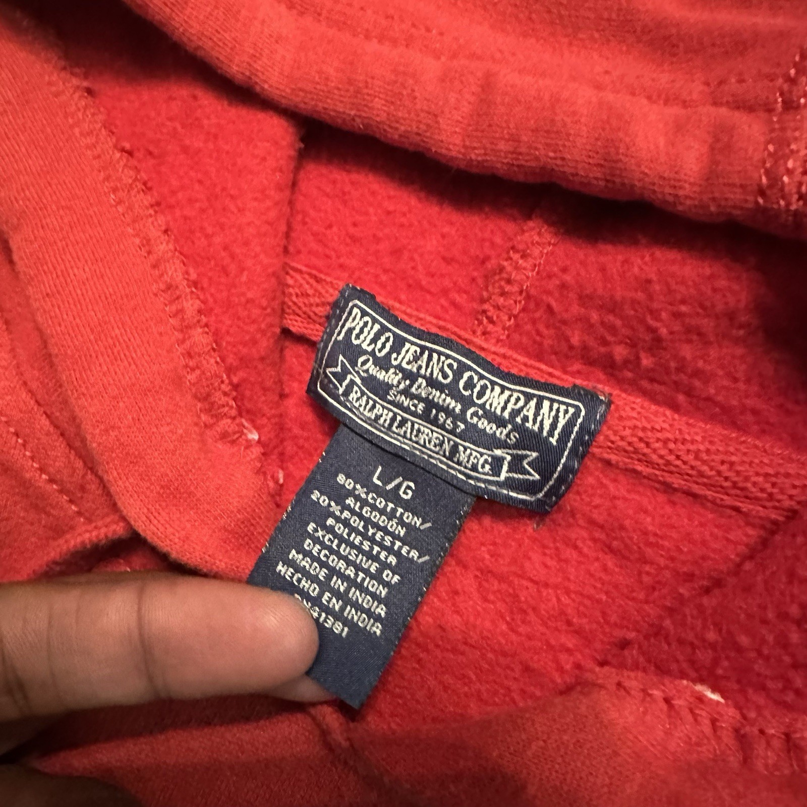 как выглядит Vintage Polo Jeans Co. Ralph Lauren Red Pullover Hoodie Size L фото