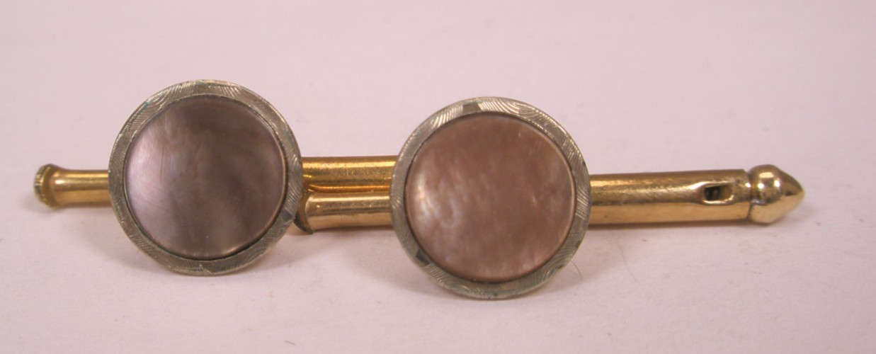 как выглядит SINGLES 2 5/16" Gray MOP Round Vintage SWANK Formal Tux Prom Shirt Stud c2031 фото