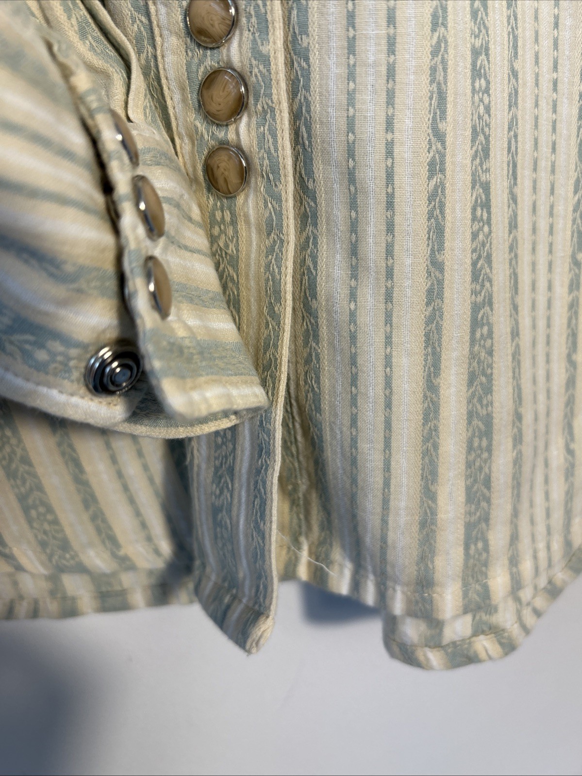 Scully Western Cream Pearl Snap Shirt Rockabilly Embroidery Tan Blue Medium M