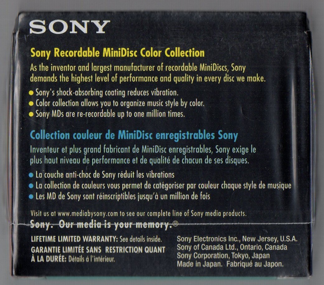 Sealed 10-Pack Sony MiniDiscs Color Collection 80min w/Shock Abs Mech Hi-MD Comp