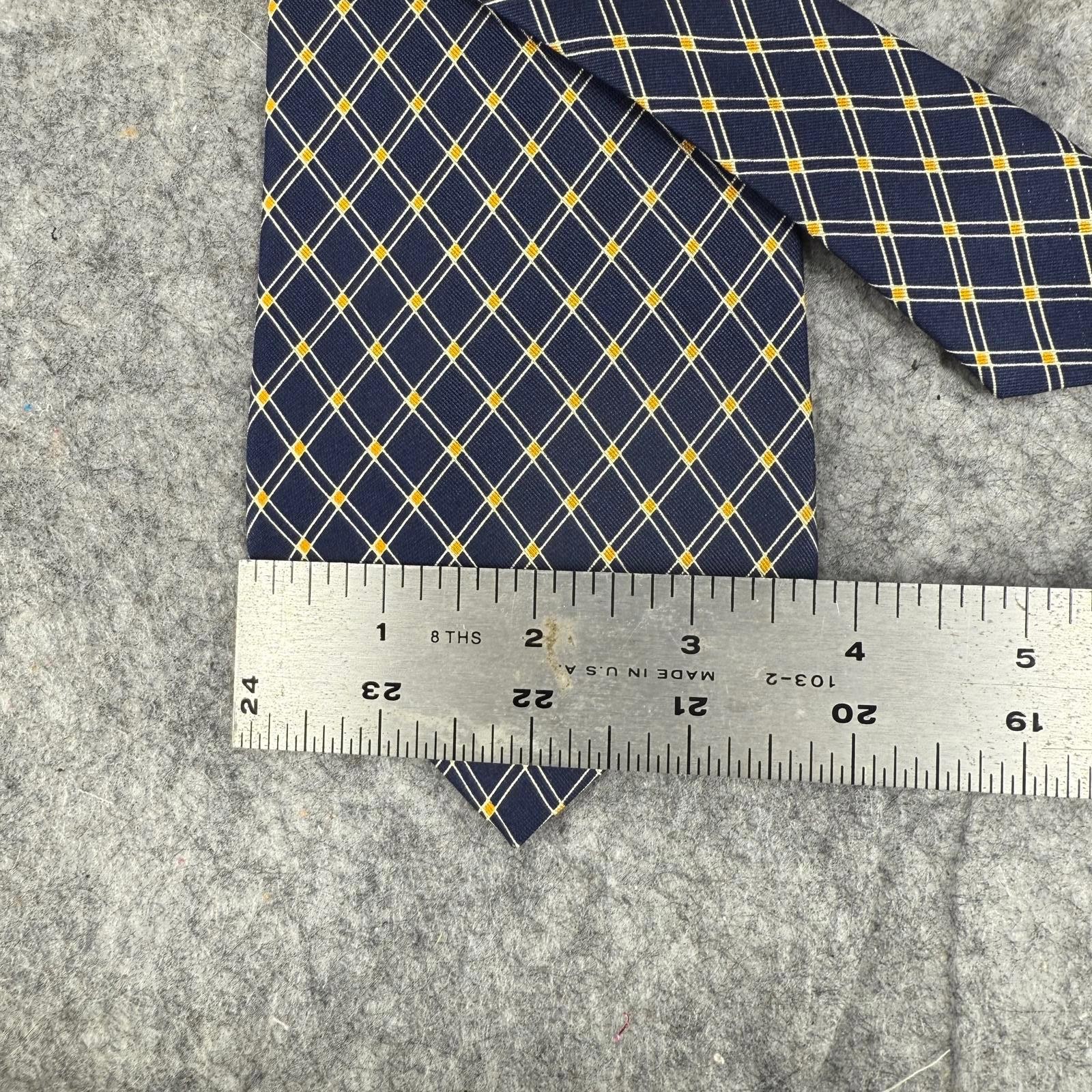 как выглядит Lauren Ralph Lauren Silk Tie Navy Blue Yellow Crosshatch Pattern 57L 4W 131 фото