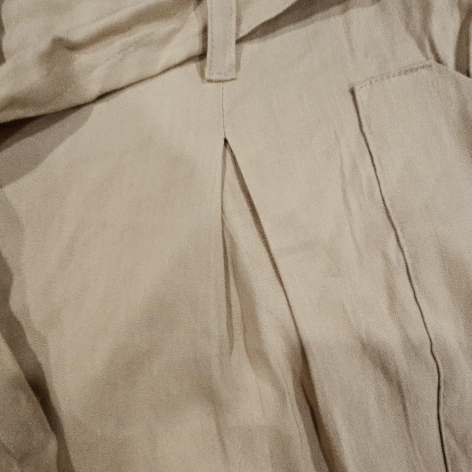 как выглядит Calvin Klein SZ 4 Tan Belted Paperbag Pleated Linen Blend Pant Utility Pockets фото