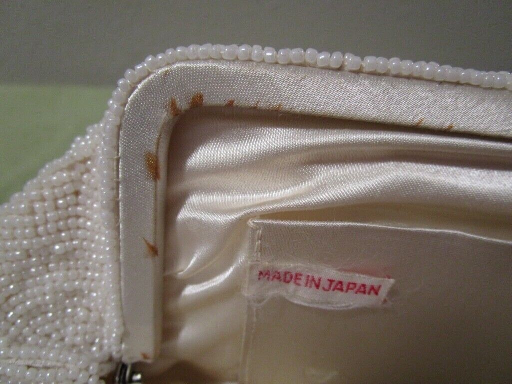 Vintage White Beaded Clutch Purse Clasp Opening Made In Japan