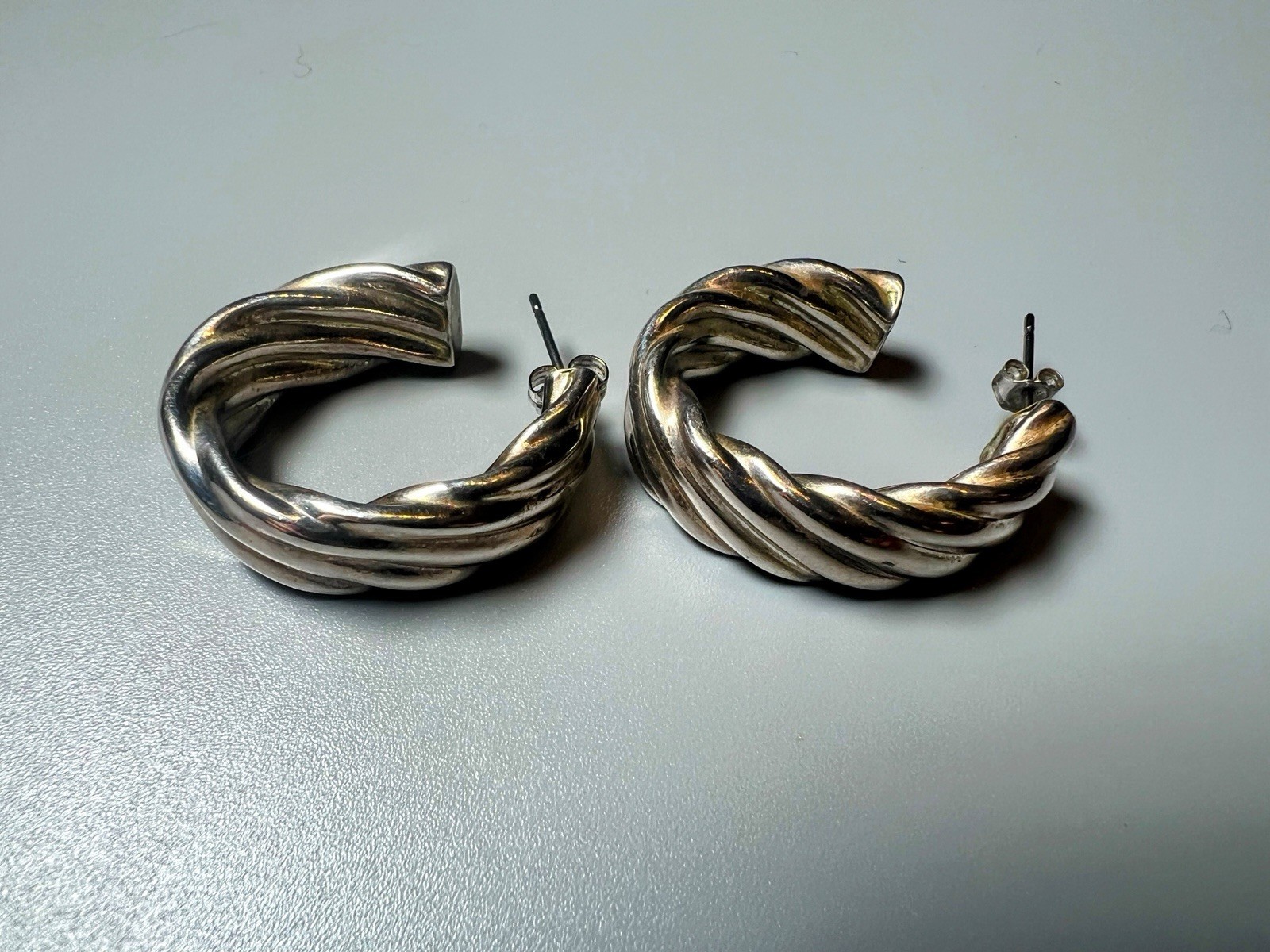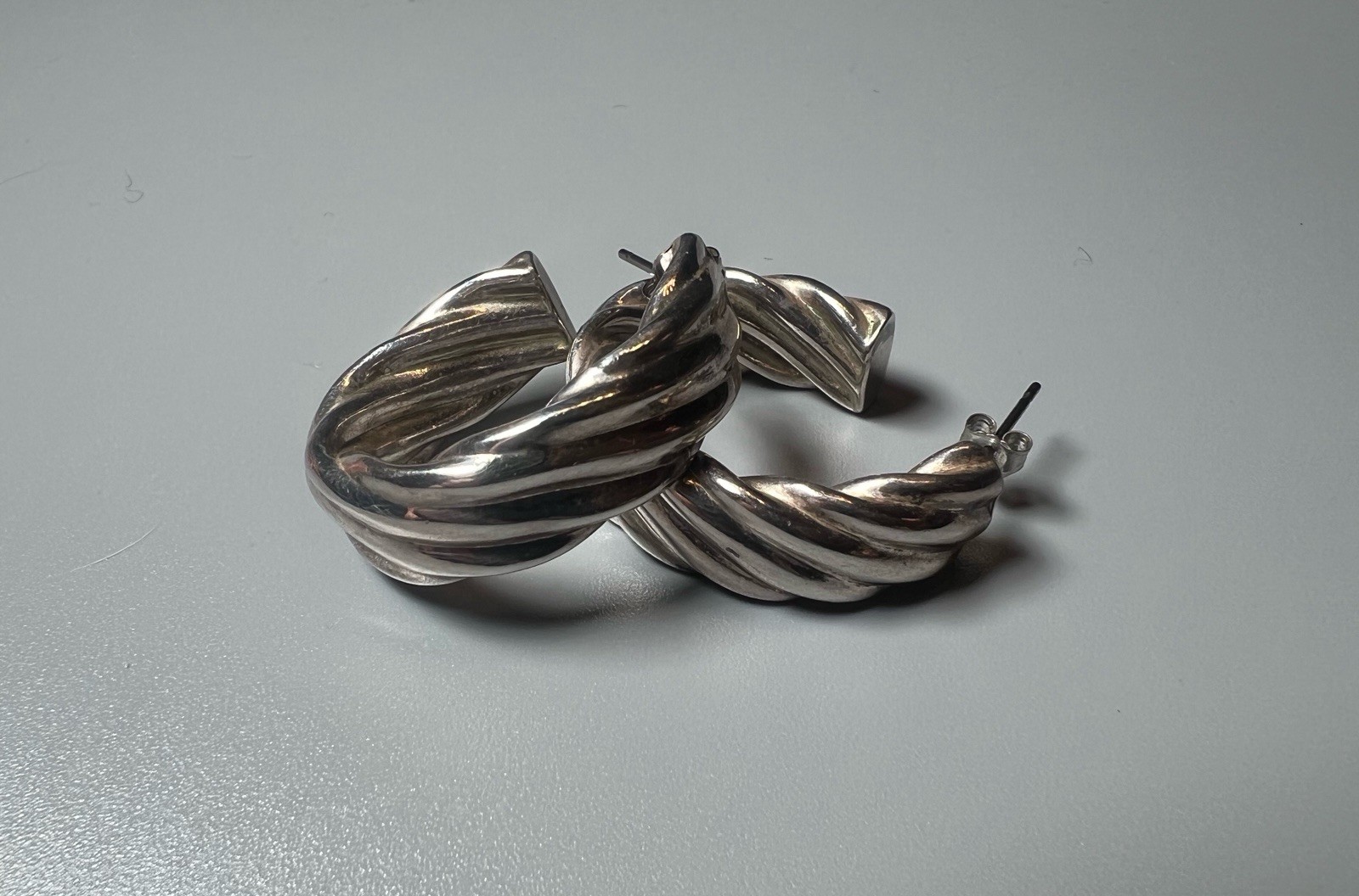 как выглядит HOB Mexico Sterling Silver 925 Ribbed Oval Hoop Earrings 1 1/5" фото